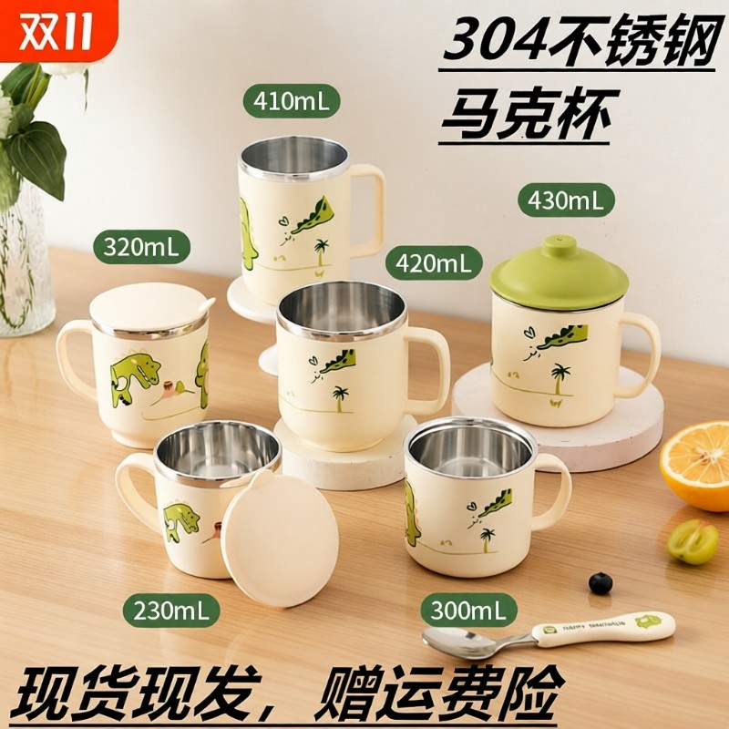 304食品级亲子杯不锈钢口杯家用子带盖随手杯可爱学生儿童喝水杯