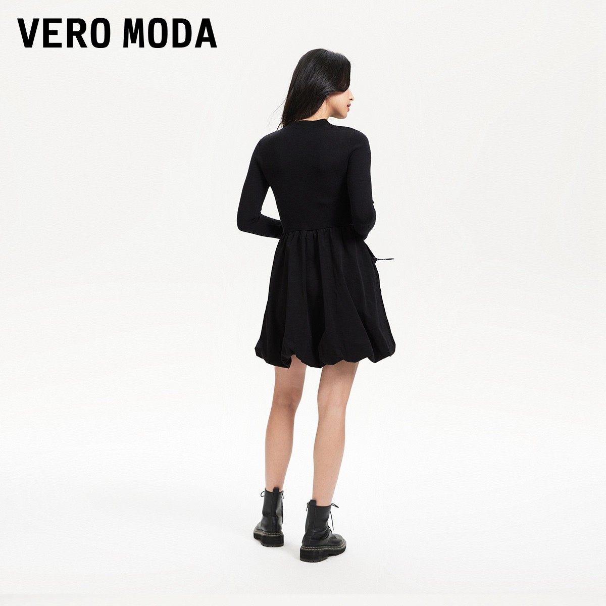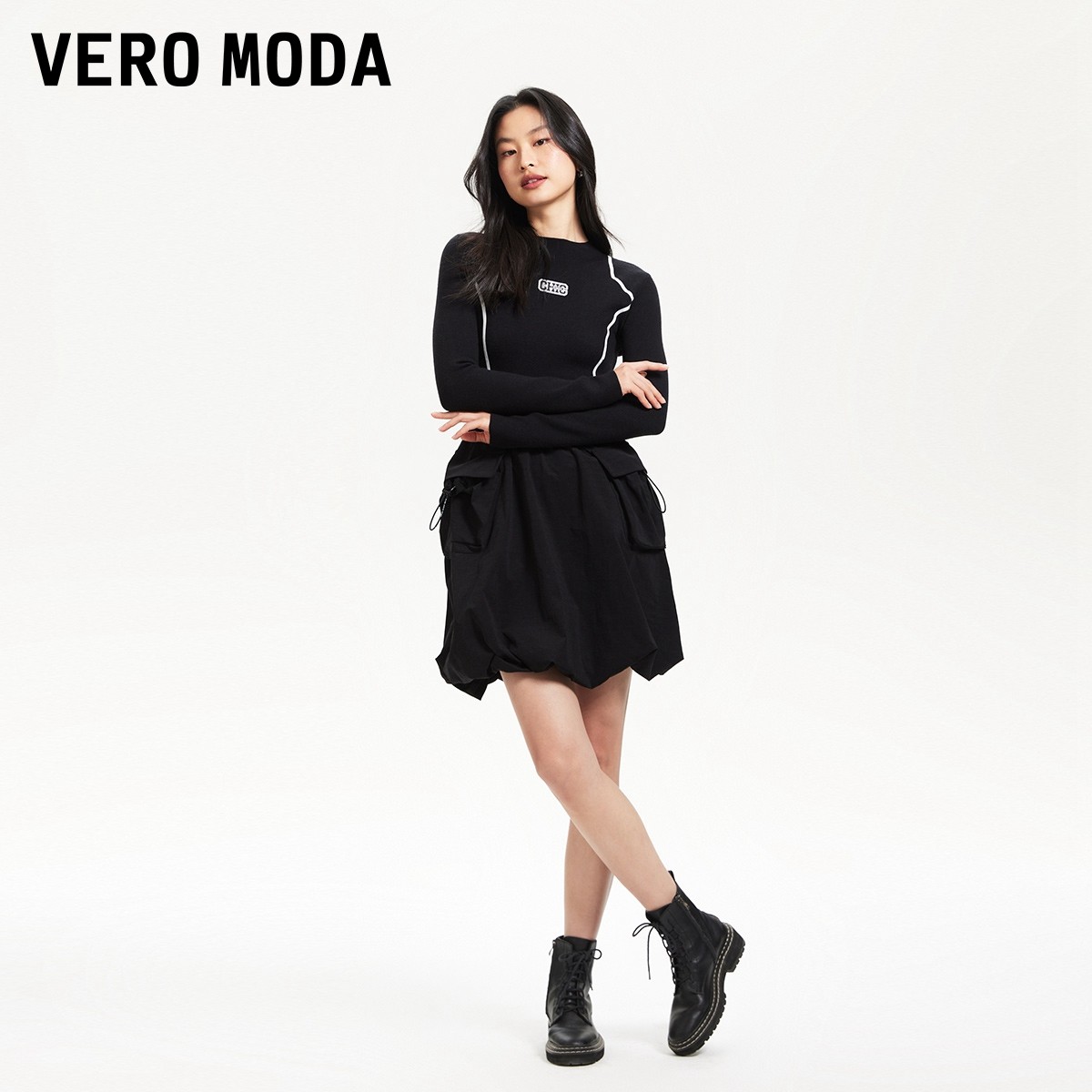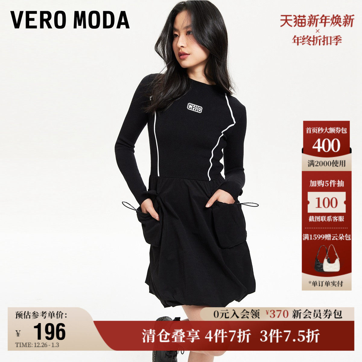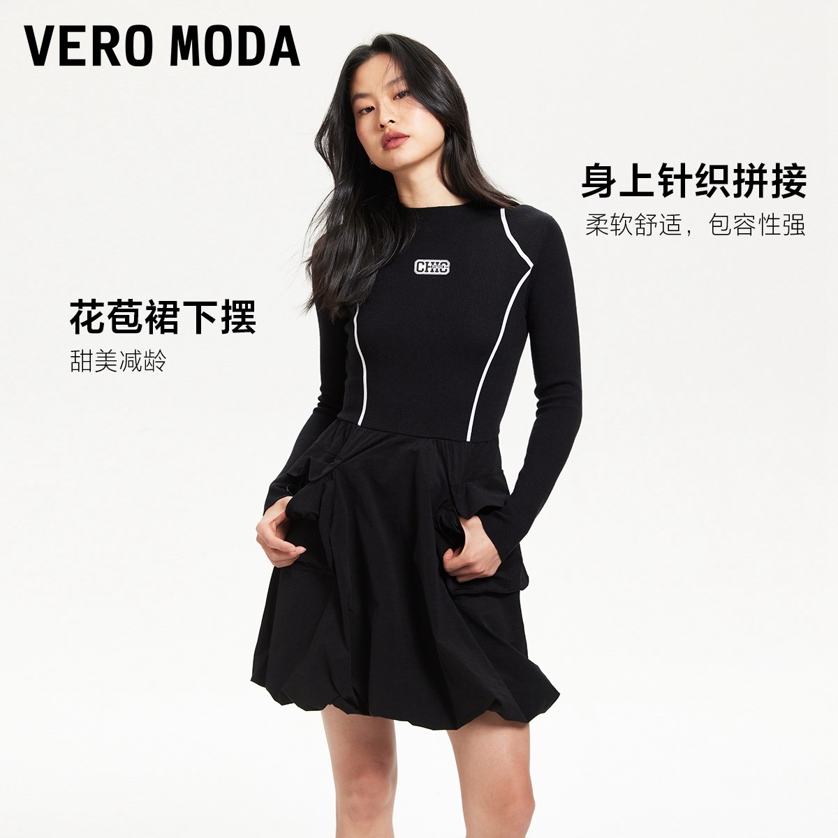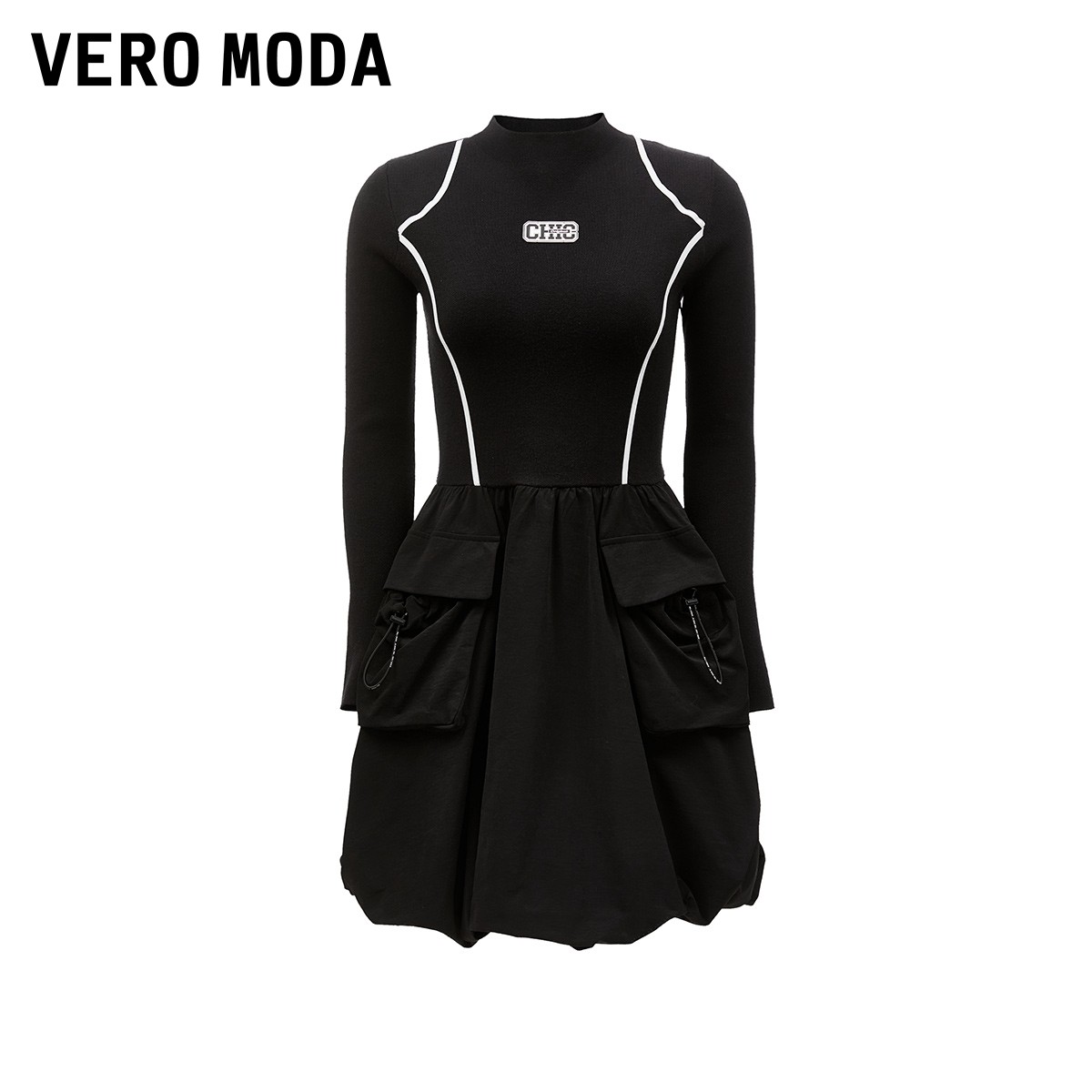 Vero Moda奥莱连衣裙秋季新款休闲修身针织小立领拼接花苞裙子