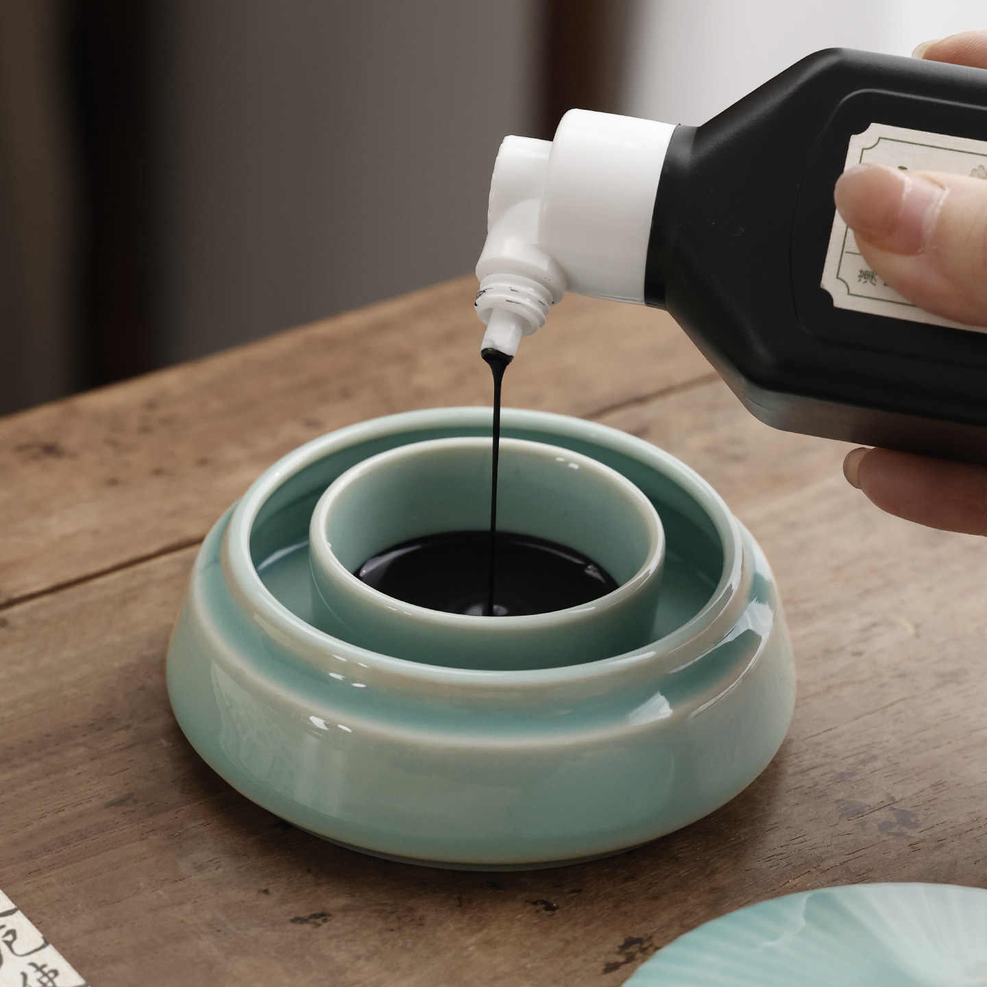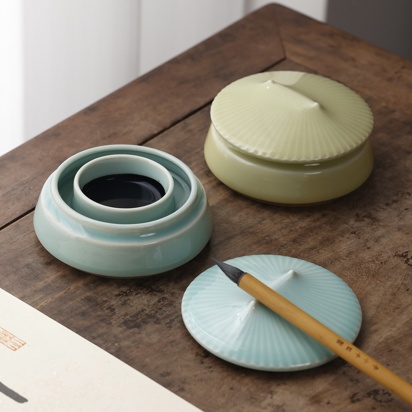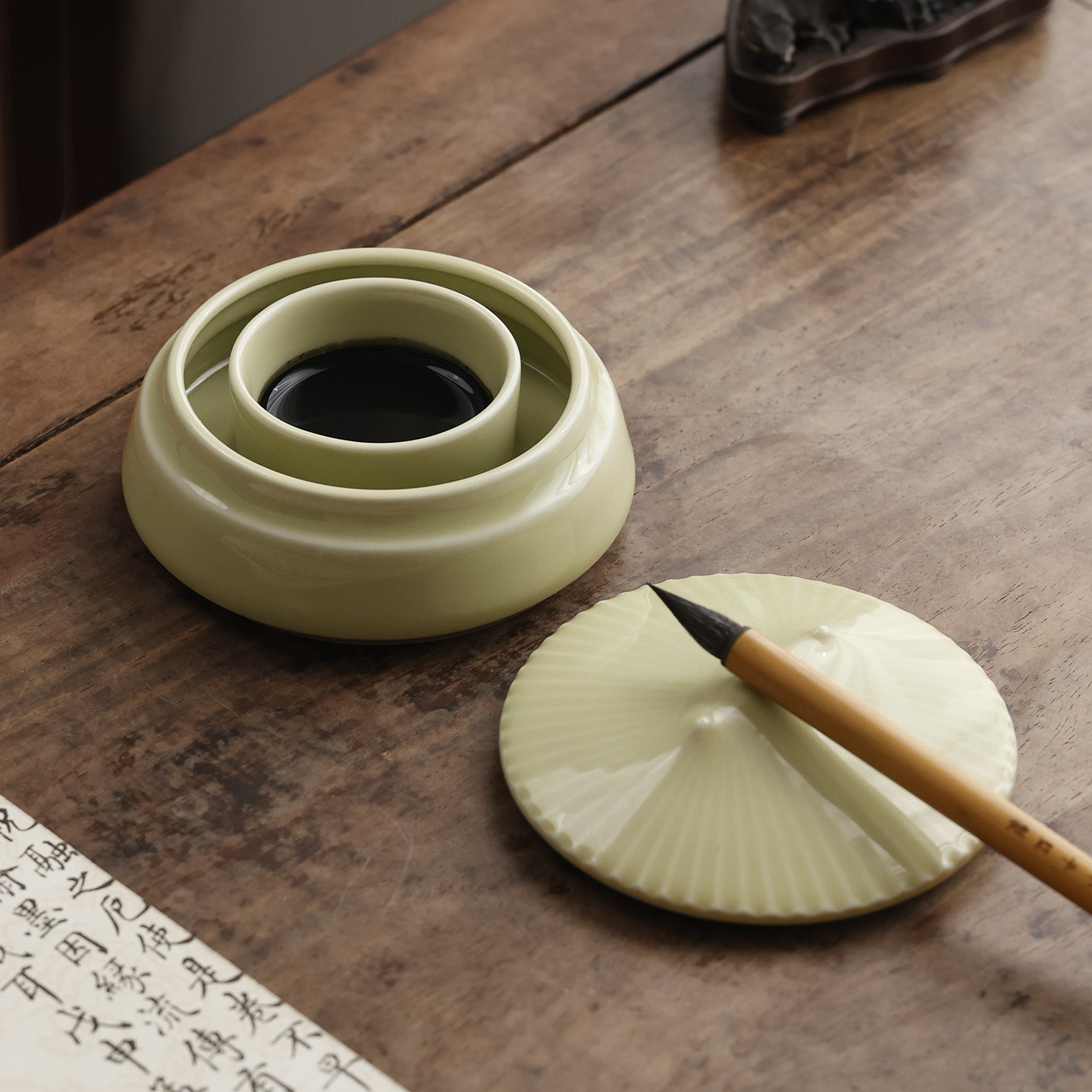 火锅砚台书法专用带盖陶瓷保湿墨碟不干墨毛笔墨汁墨盒墨池火锅砚文房四宝