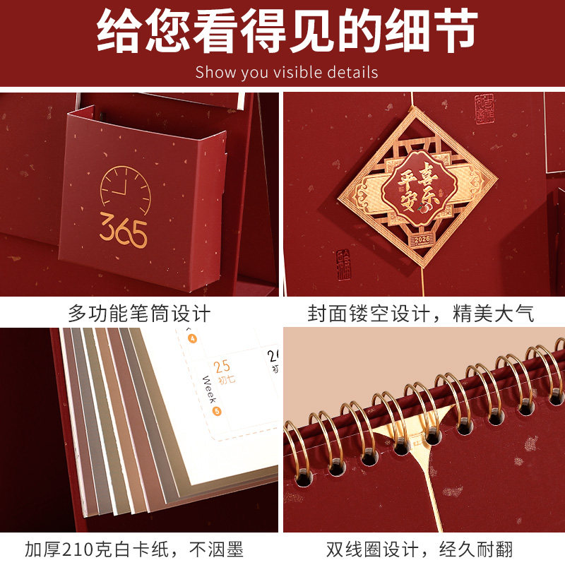 2026年新款台历中国风精美笔筒月历多功能创意桌面小摆件定制logo