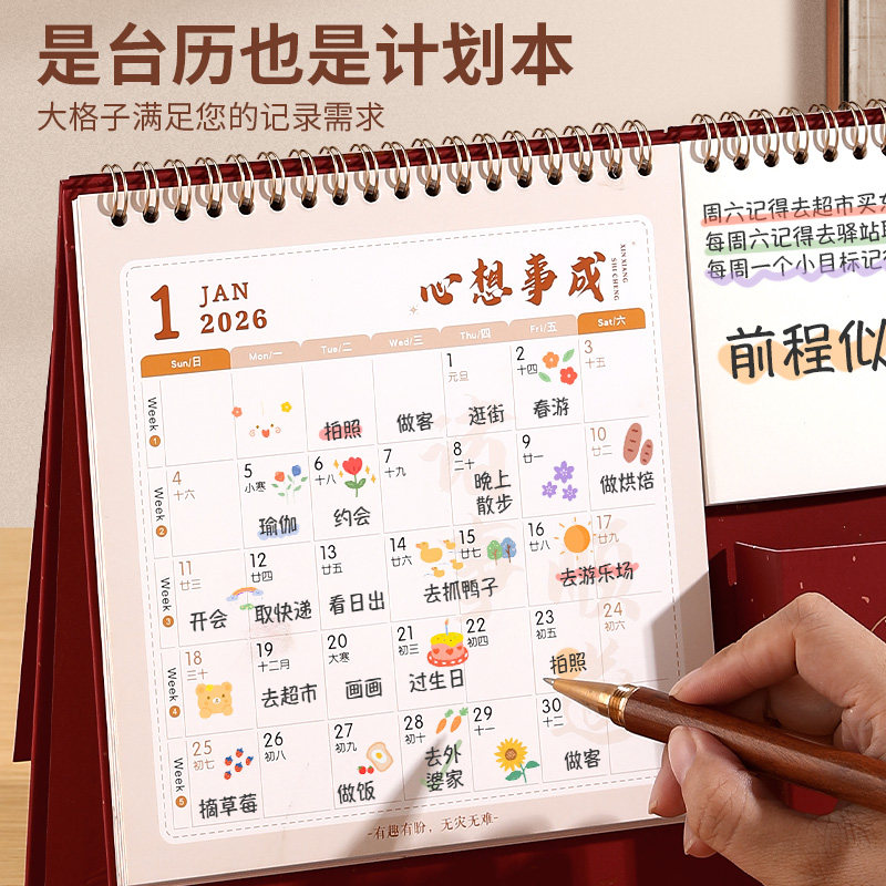 台历2026年新款日历定制logo创意简约小清新韩式办公年历个性中国风桌面摆件商务工作记事计划本订制广告月历