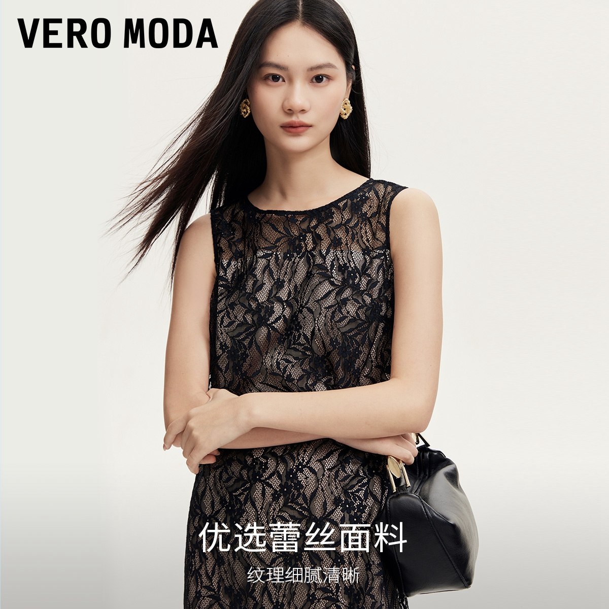 Vero Moda奥莱连衣裙秋冬新款无袖圆领气质优雅女人蕾丝裙子流行