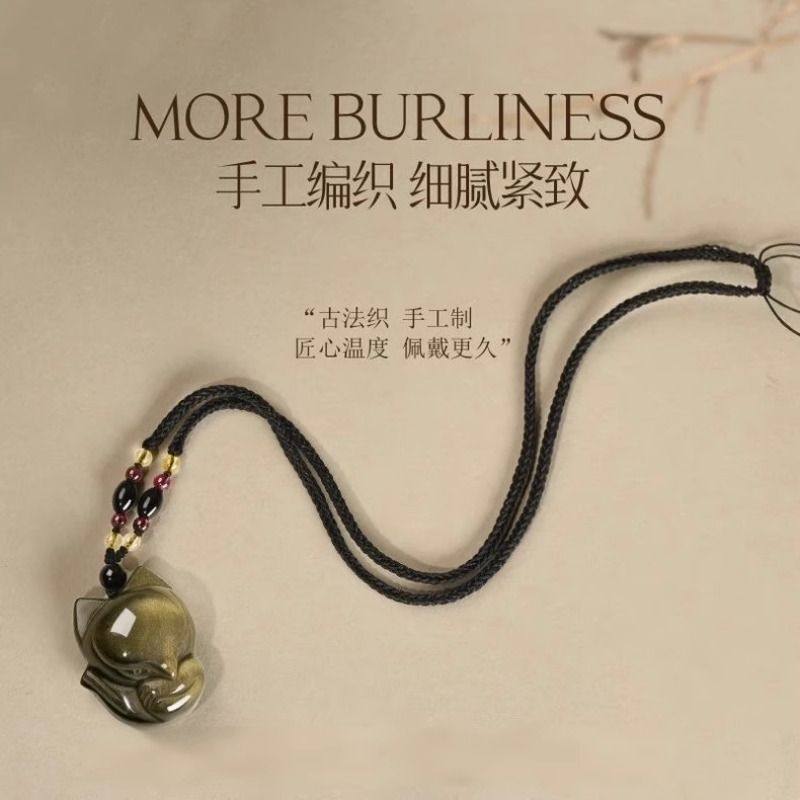 VZZS天然黑曜石狐狸吊坠彩虹眼九尾狐项链男女送礼品灵狐金曜石