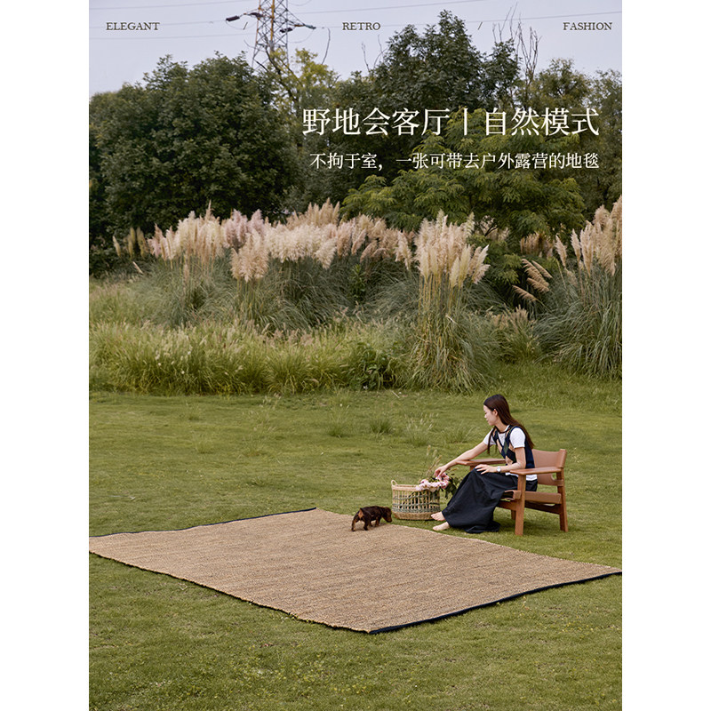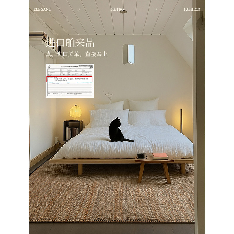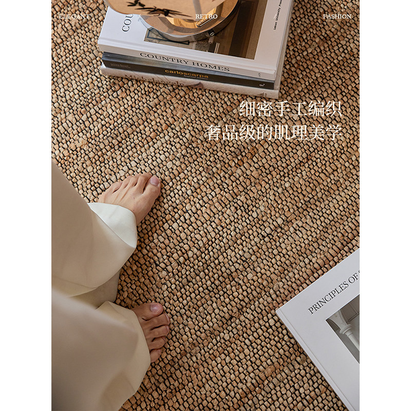 蜡笔派盖尔进口黄麻手工编织中古风客厅卧室无胶地毯垫轻奢高级