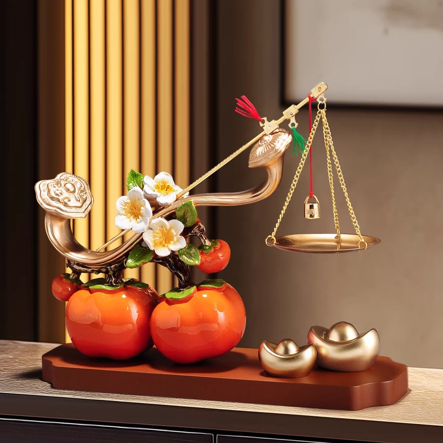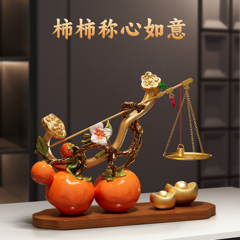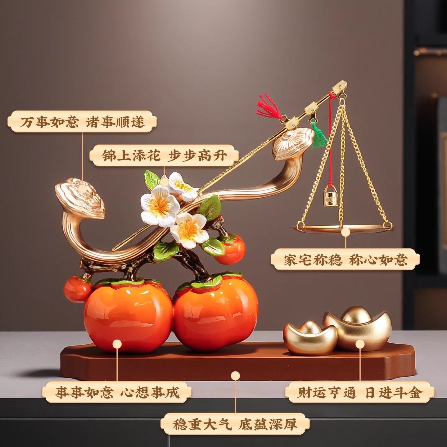 柿柿称心如意摆件客厅玄关电视柜乔迁之喜装饰品搬家入宅新居礼物