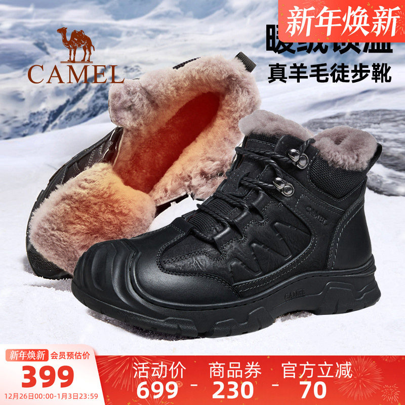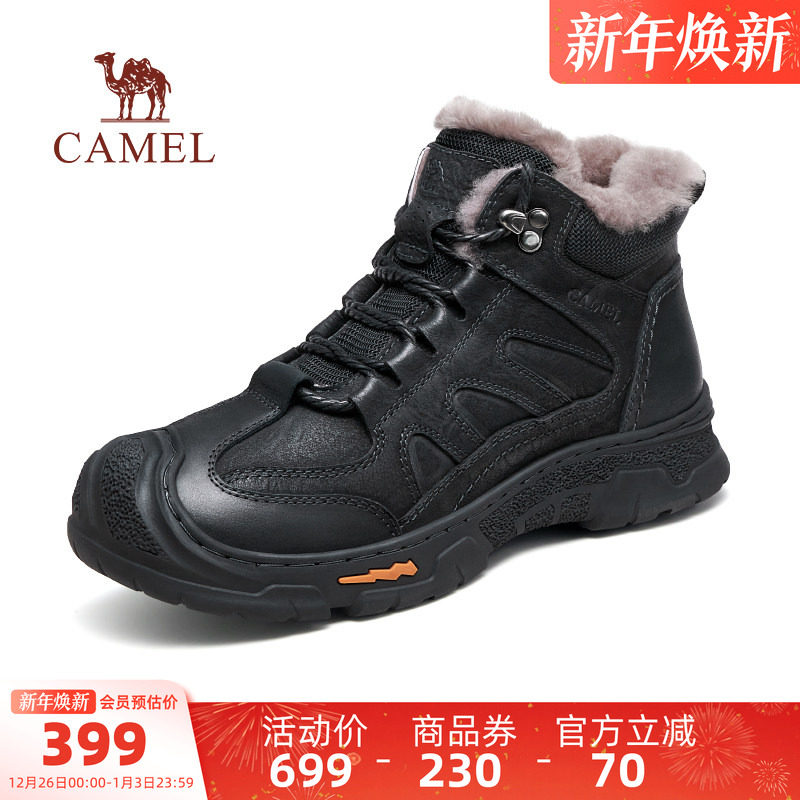 骆驼男鞋加绒高帮鞋冬季新款加厚雪地靴男棉鞋户外运动徒步登山鞋