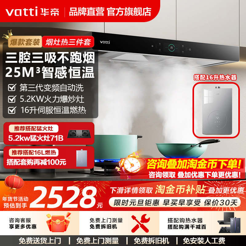 华帝三腔S7+71B抽油烟机燃气灶套餐煤气灶具三件套装官方旗舰店