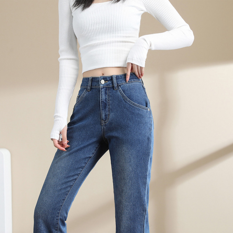 店主 自留款推荐~浅色加绒窄版直筒牛仔裤女秋冬宽松高腰阔腿裤