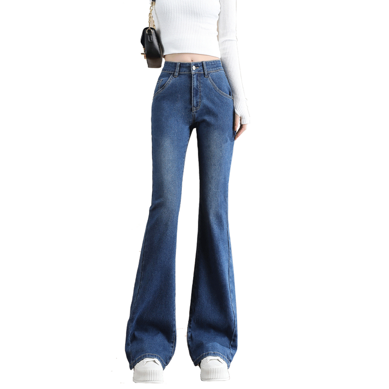 艾恩晟 25年秋冬新款牛仔裤女微喇叭 深蓝色弹性窄版修身显瘦
