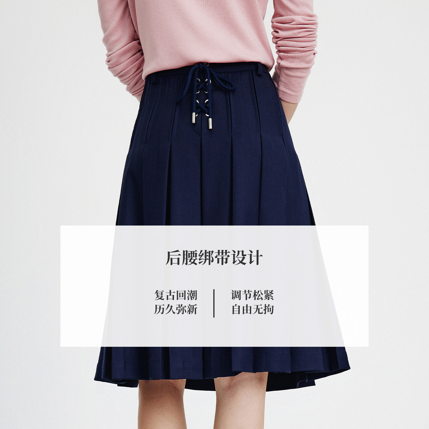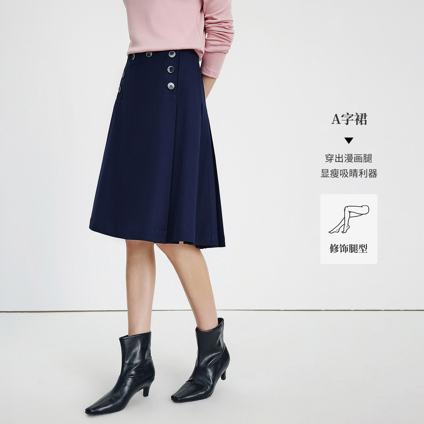 Navigare意大利小帆船休闲半身裙女2025秋季新款A字裙百搭百褶裙