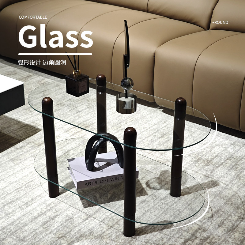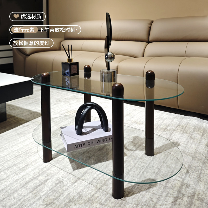 实木钢化玻璃茶几法式家用客厅小户型茶几边几设计师高级感茶台桌