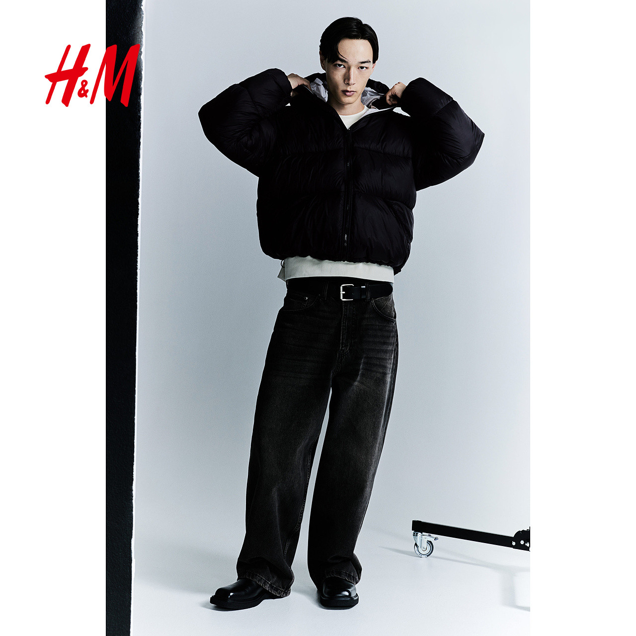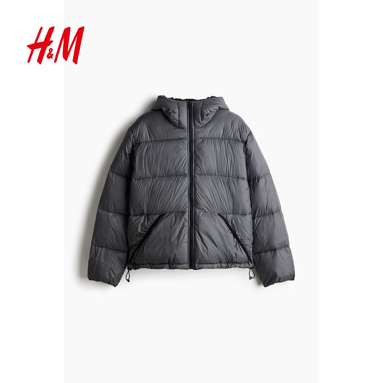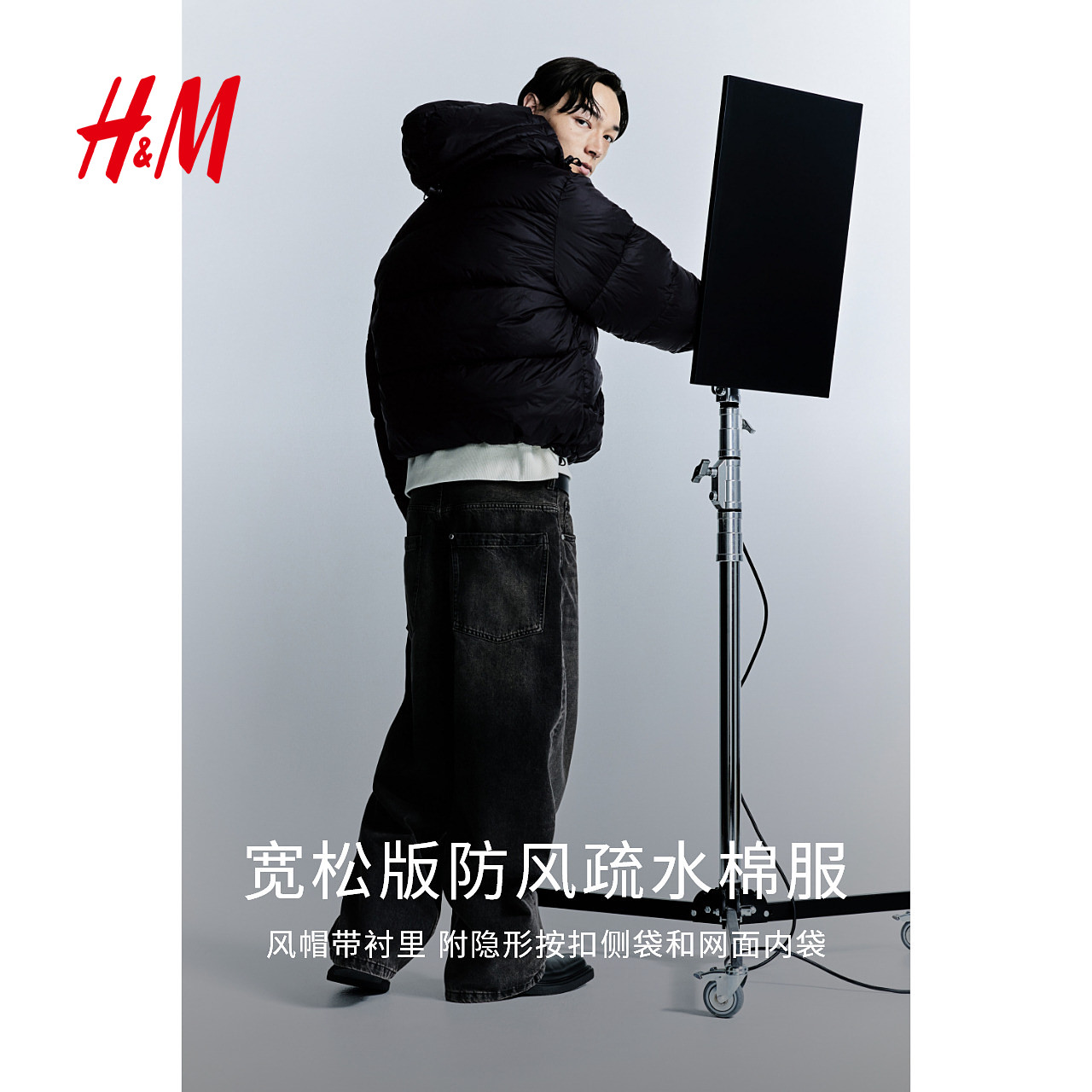 HM男装女装棉服冬季情侣户外休闲连帽宽松保暖疏水棉衣1245643