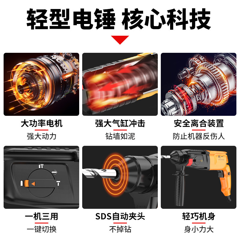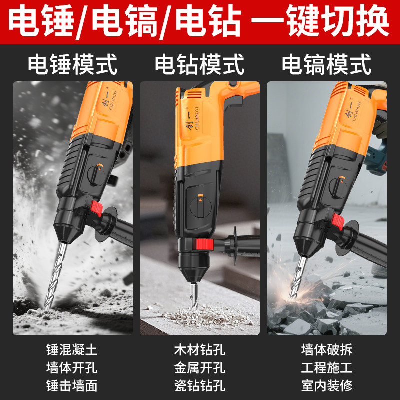 创一轻型电锤电镐电钻三用小型家用大功率工业级冲击钻轻锤两用