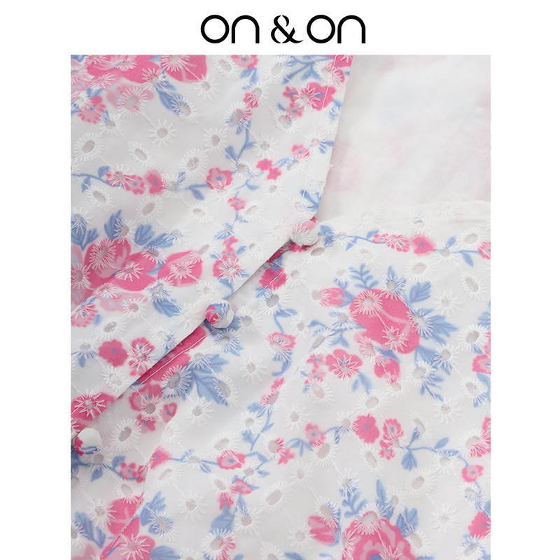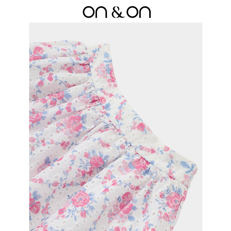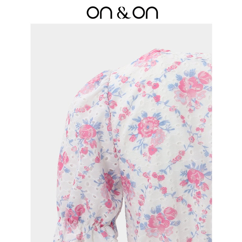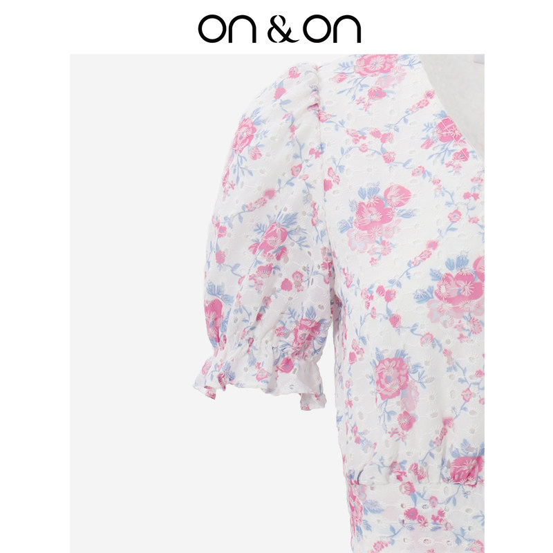ON&ON/安乃安2025夏季法式V领镂空绣花泡泡袖印花小衫+半裙套装