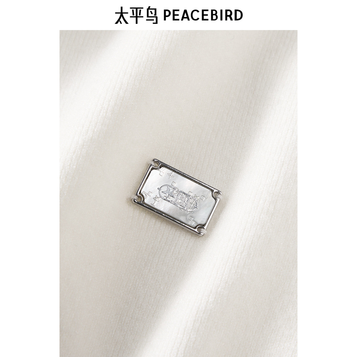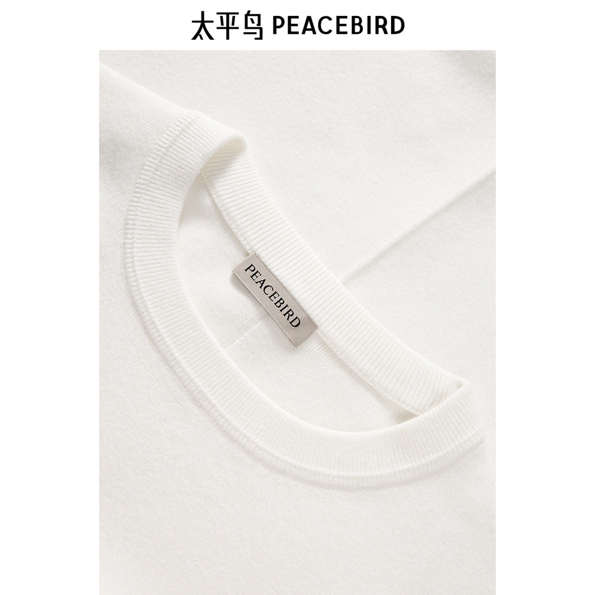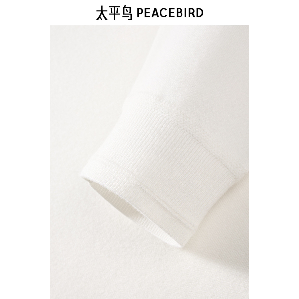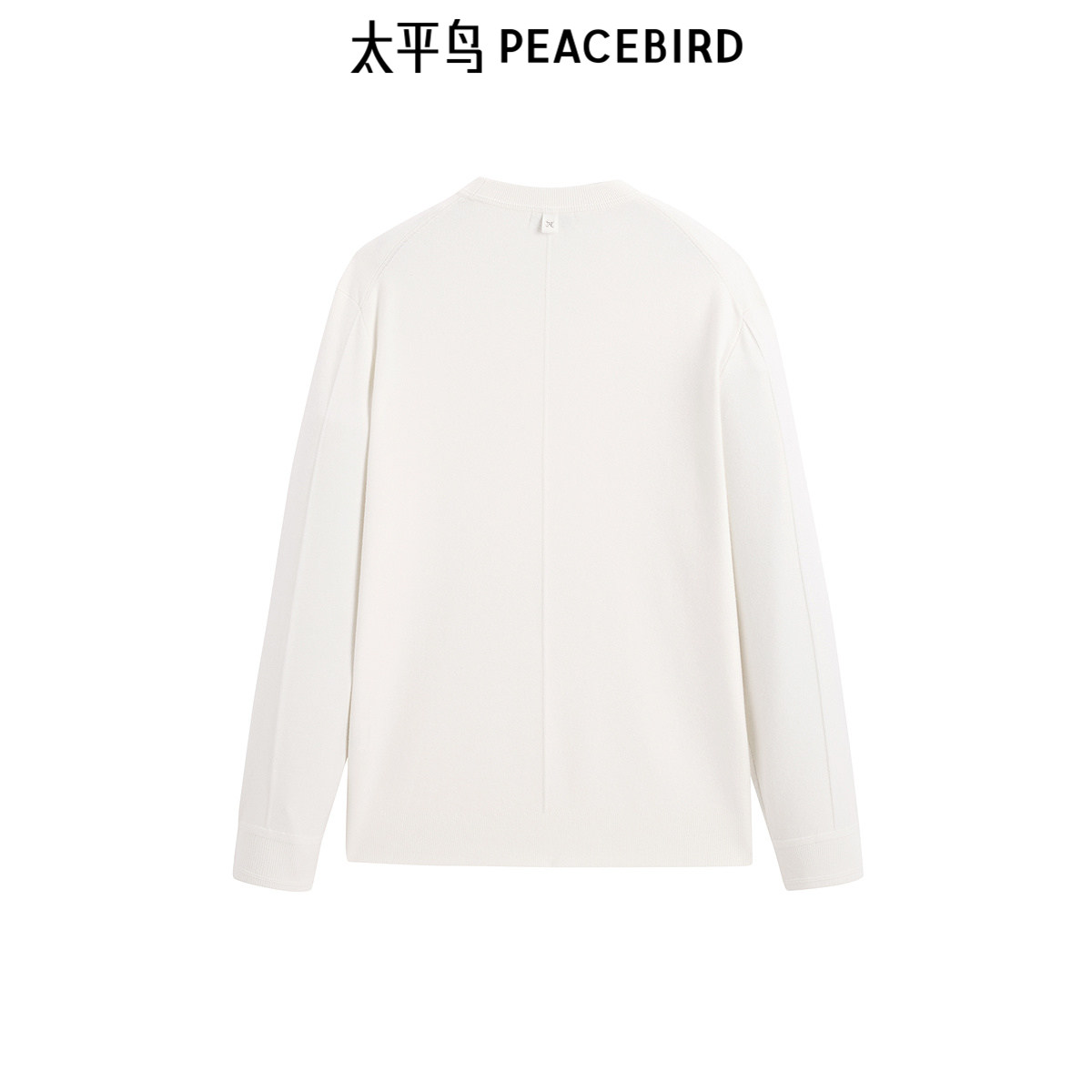 太平鸟男装 纯色圆领修身休闲毛衣秋季白色保暖打底衫时尚针织衫