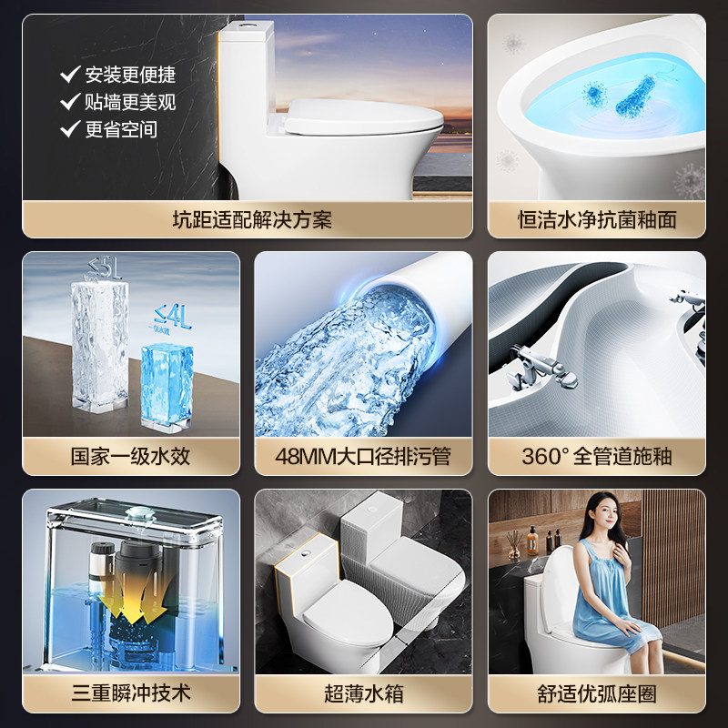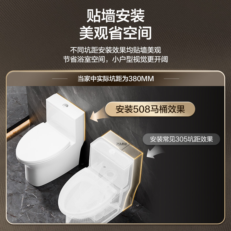 恒洁卫浴可调坑距马桶大冲力虹吸式节水佛山家用坐便器508