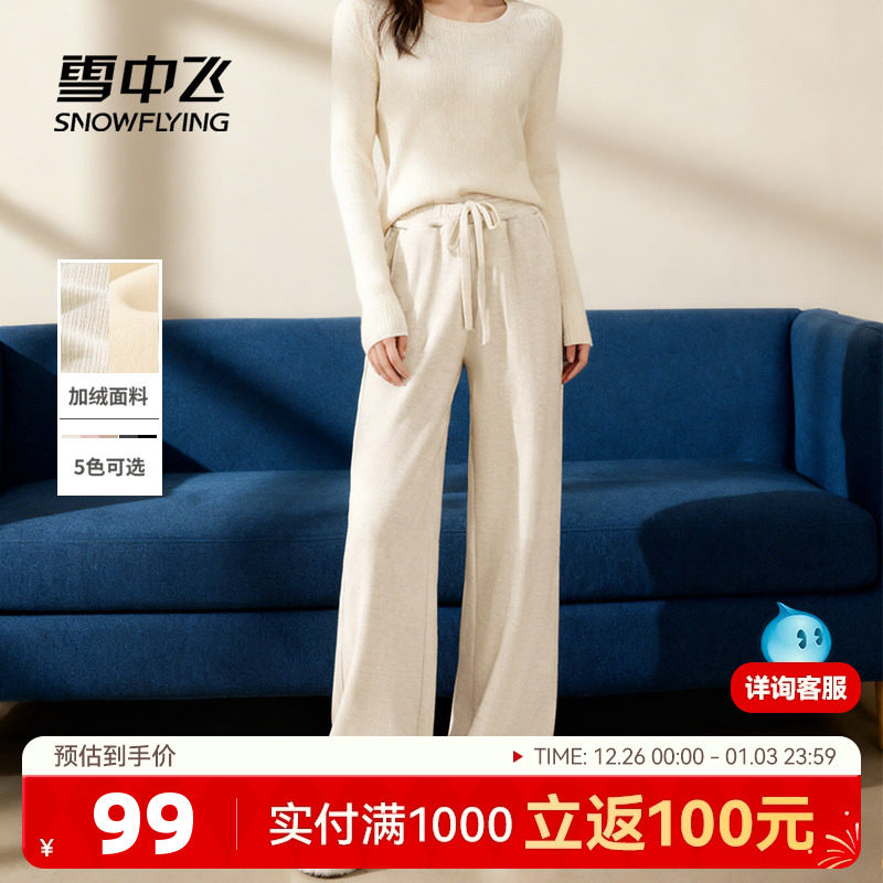 雪中飞加绒裤子女秋冬加厚2026新款阔腿裤小个子仿羊绒休闲长裤PC