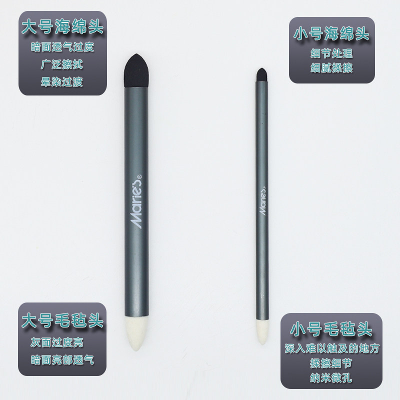 马利素描擦刀擦笔纸笔美术生专用双头揉擦笔油画棒晕染高光刷刮刀擦替换头美妆蛋海绵球工具套装灰面笔软擦蛋