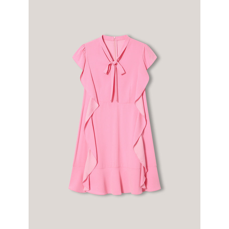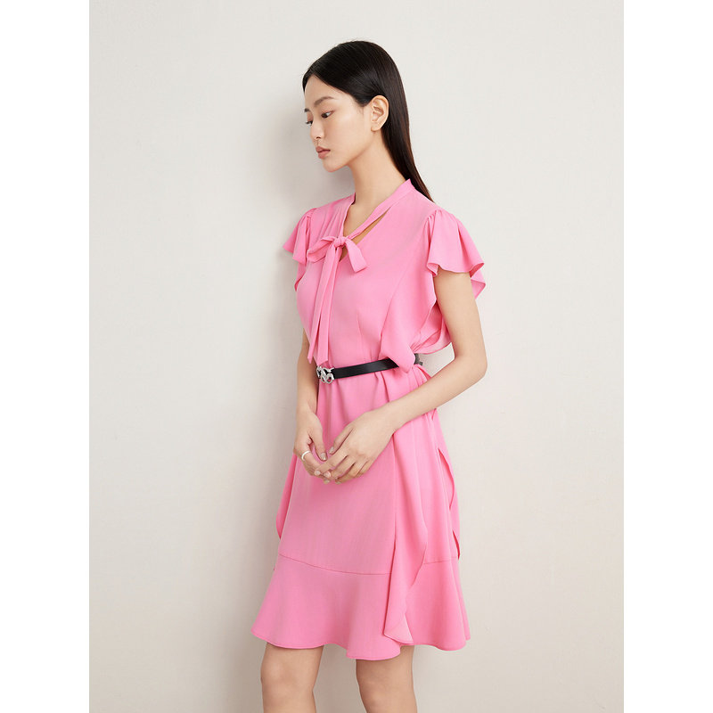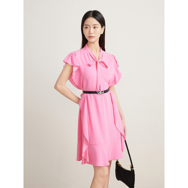 Goodland美地夏季浪漫荷叶边飞飞袖V领飘带连衣裙