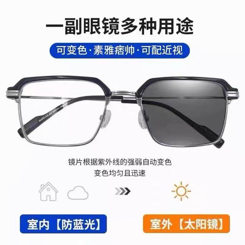 感光男女防蓝光辐射抗疲劳平光眼镜半框护眼防近视无度数变色镜框