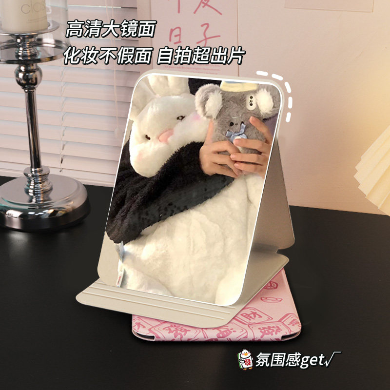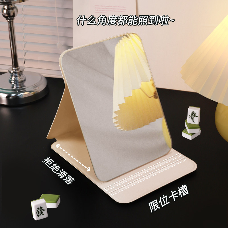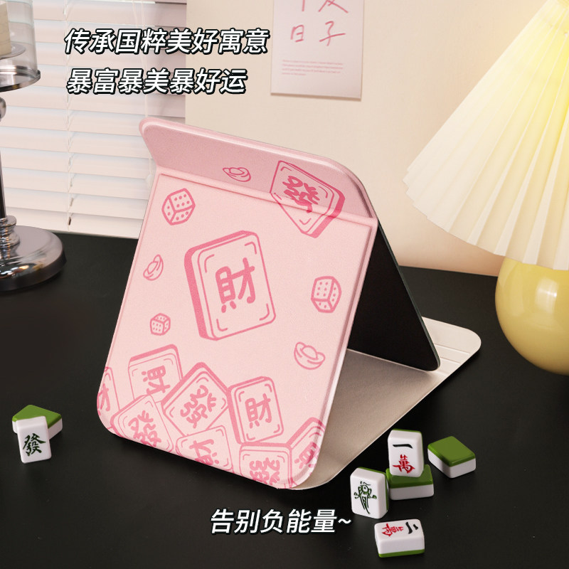 新款发财麻将化妆镜子家用高清大号宿舍网红办公室桌面便携折叠镜