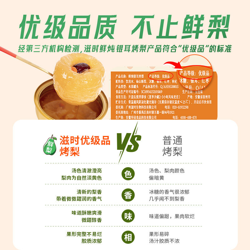 滋时鲜炖银耳烤梨开盖即食水果罐头方便甜品冰糖雪梨整颗砀山雪梨