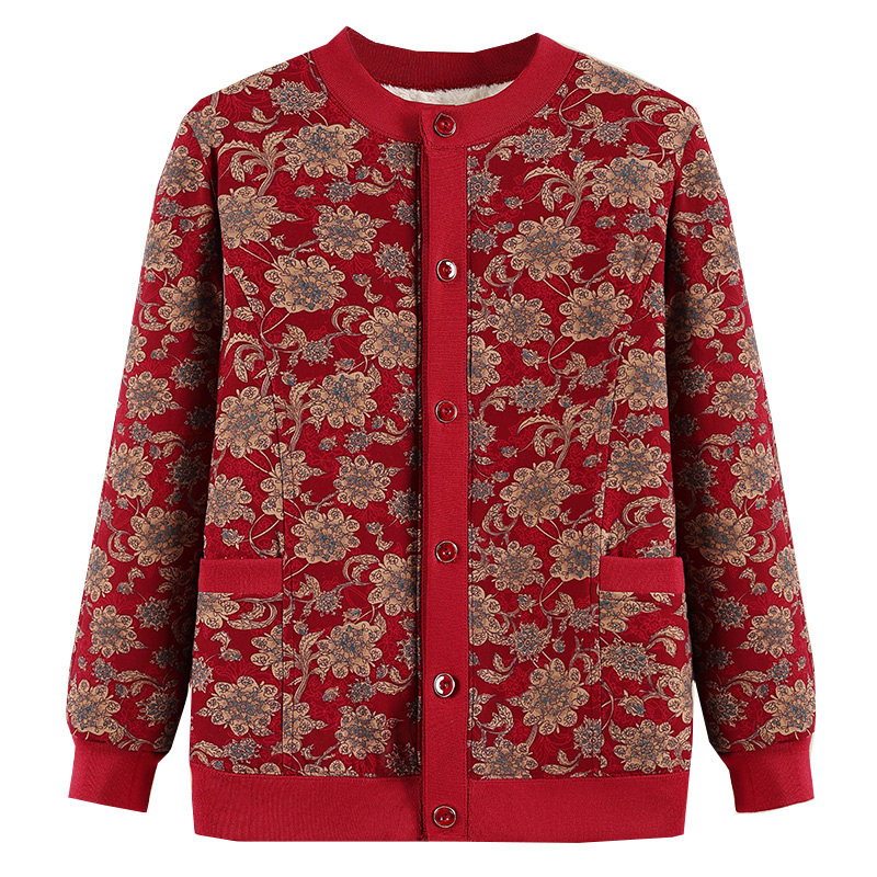 妈妈秋冬季加绒外套女中老年人大码宽松翻领棉衣三层加厚棉服上衣