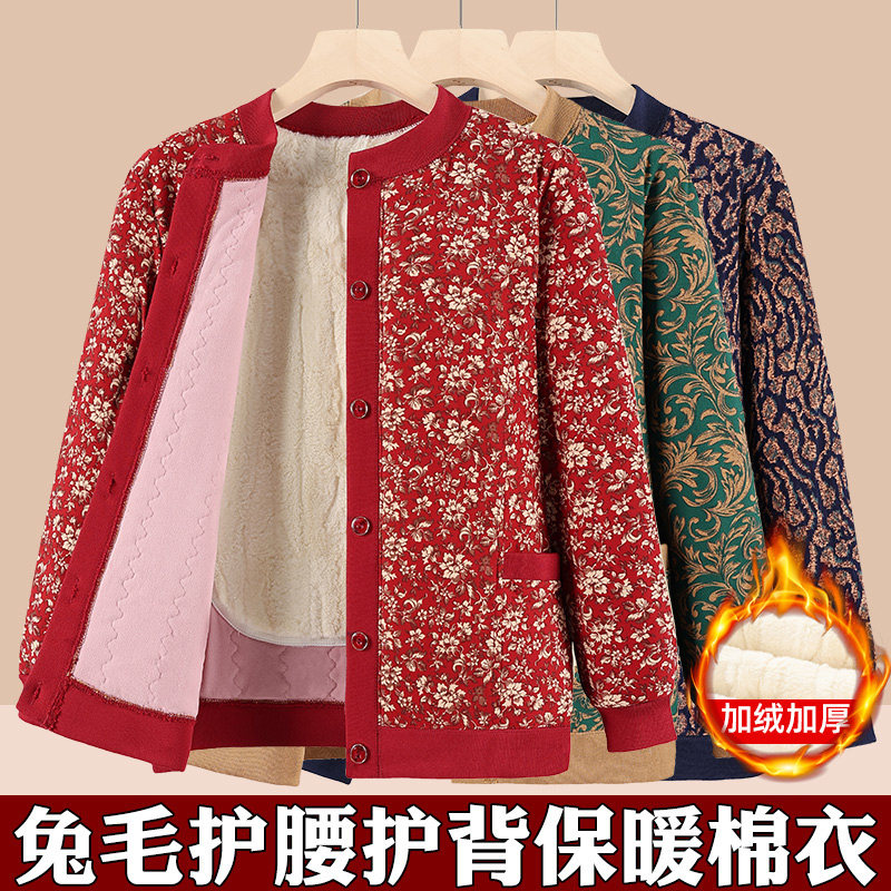 妈妈装冬款加绒护腰棉衣中老年女装保暖小棉袄奶奶外套老人女棉服