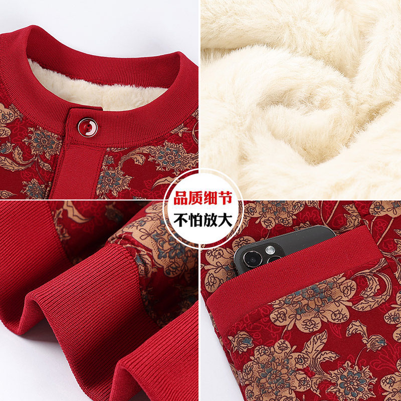 妈妈秋冬装一体绒毛衣洋气打底衫中老年人女加绒加厚保暖上衣套装