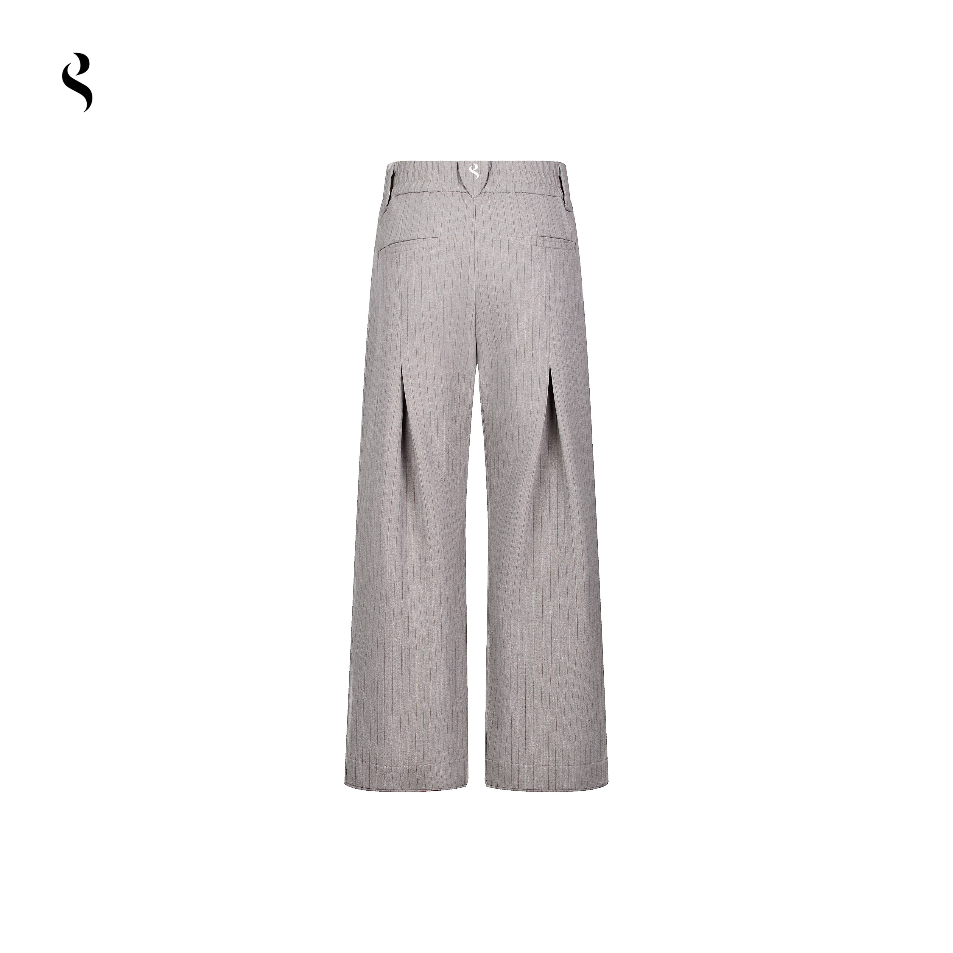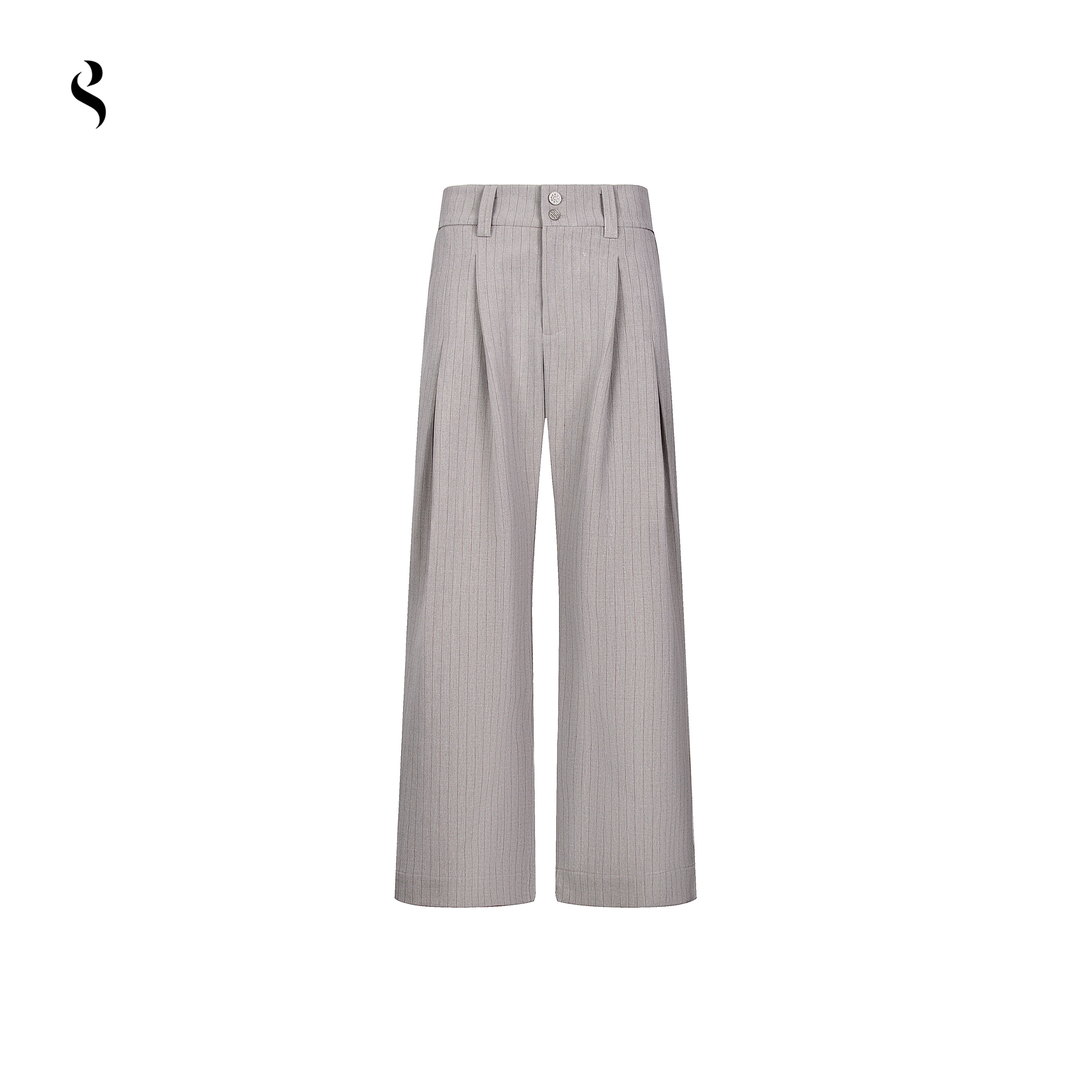 Succinct“赋”剑道三角双褶多纽扣条纹A字微阔直筒长裤秋冬西裤