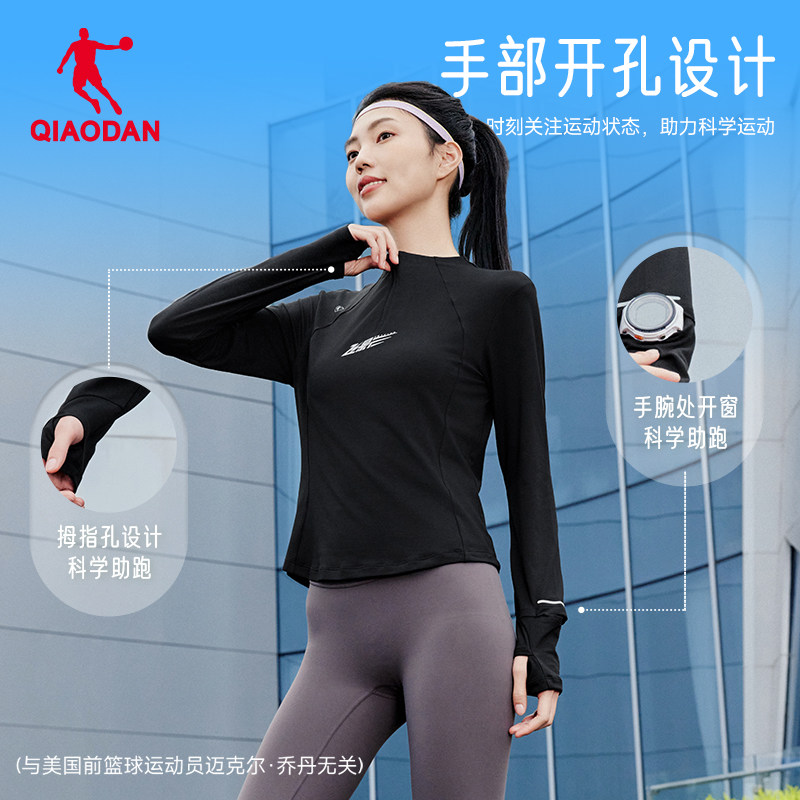 乔丹飞影跑步速干衣长袖女士t恤冬季新款舒适健身情侣上衣瑜伽服