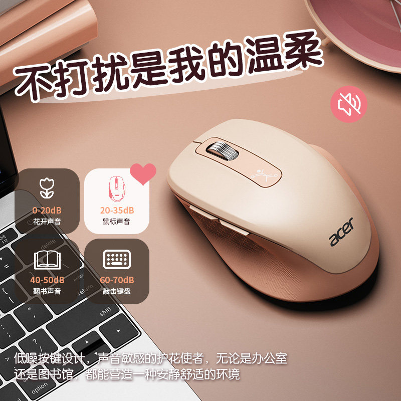 acer/宏碁无线鼠标蓝牙静音双模女生办公可充电台式电脑笔记本用