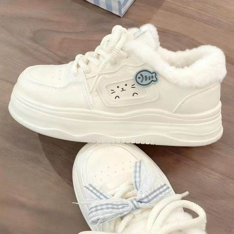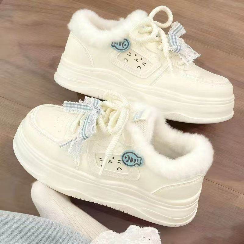 巴布豆儿童女鞋2025秋冬加绒新款女童小白鞋软底系带休闲百搭板鞋