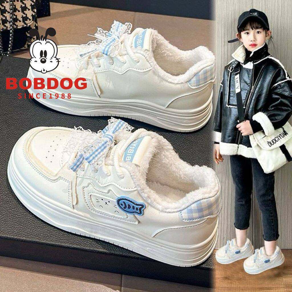 巴布豆童鞋儿童板鞋2025新款冬季加绒二棉鞋男童鞋子女男孩运动鞋