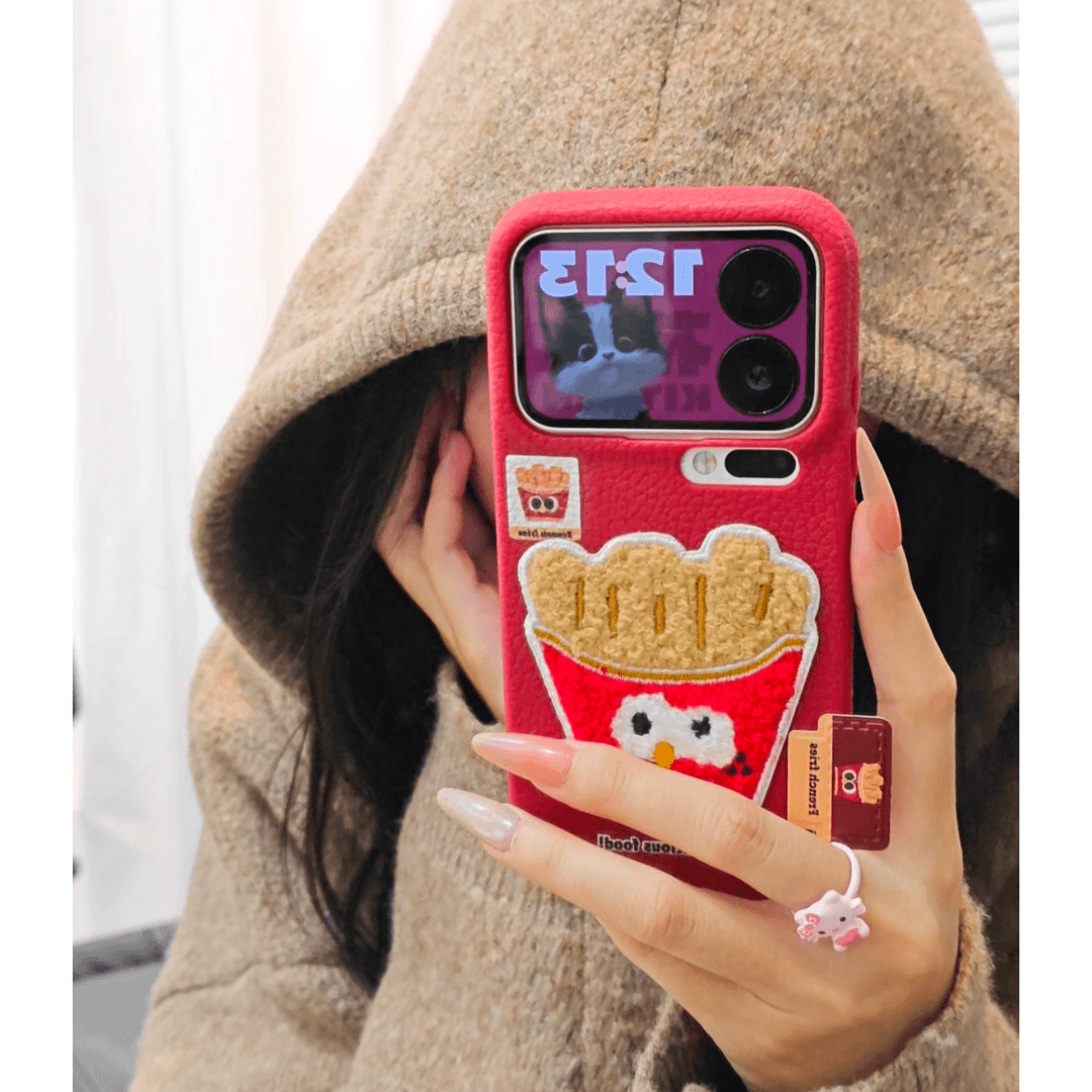 皮纹tpu刺绣薯条曲奇贴件标签适用苹果17/16promax手机壳华为P70vivo小米17潮可爱保护套p80小米15pro