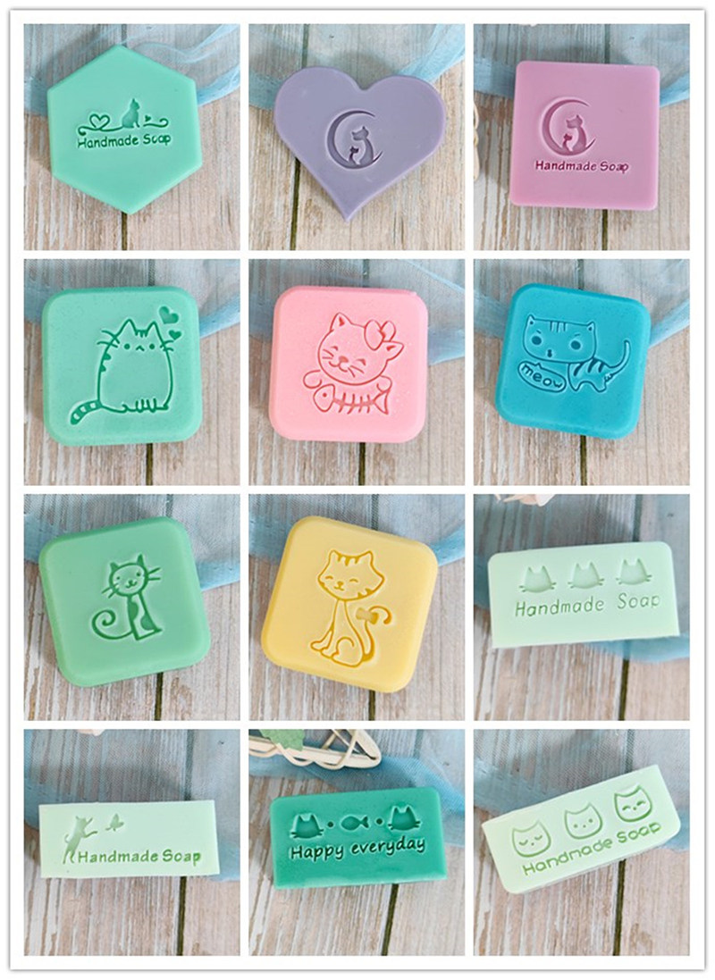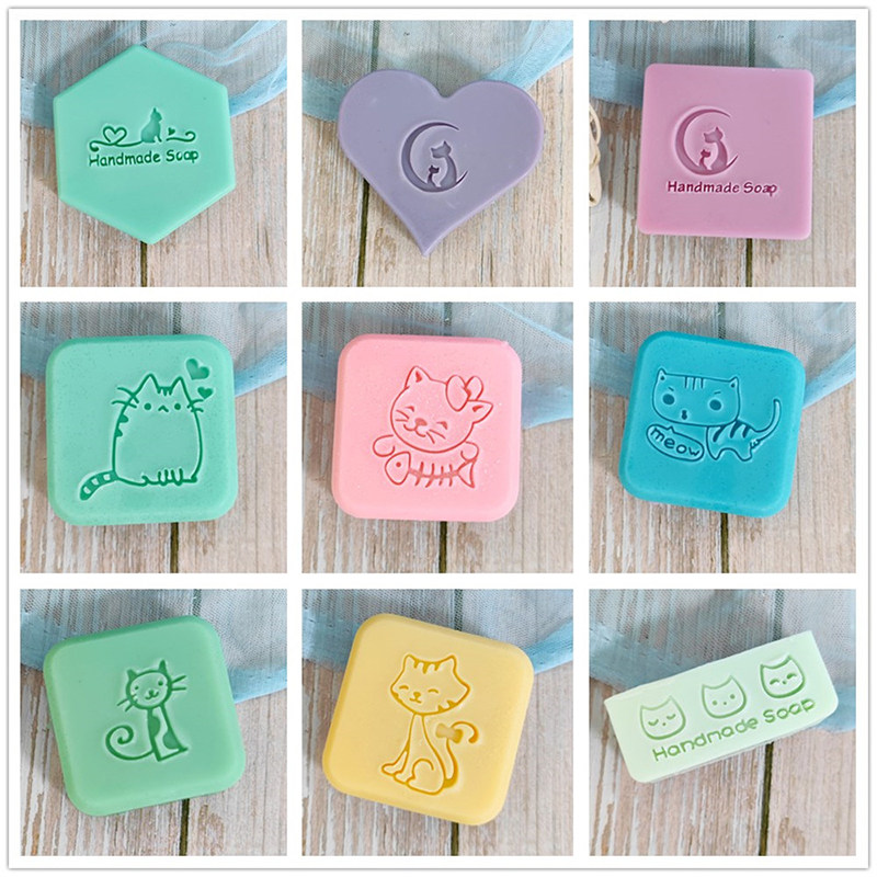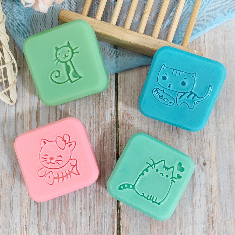 卡通小猫可爱小清新创意图案手工亚克力手柄DIY印章精油皂香皂章