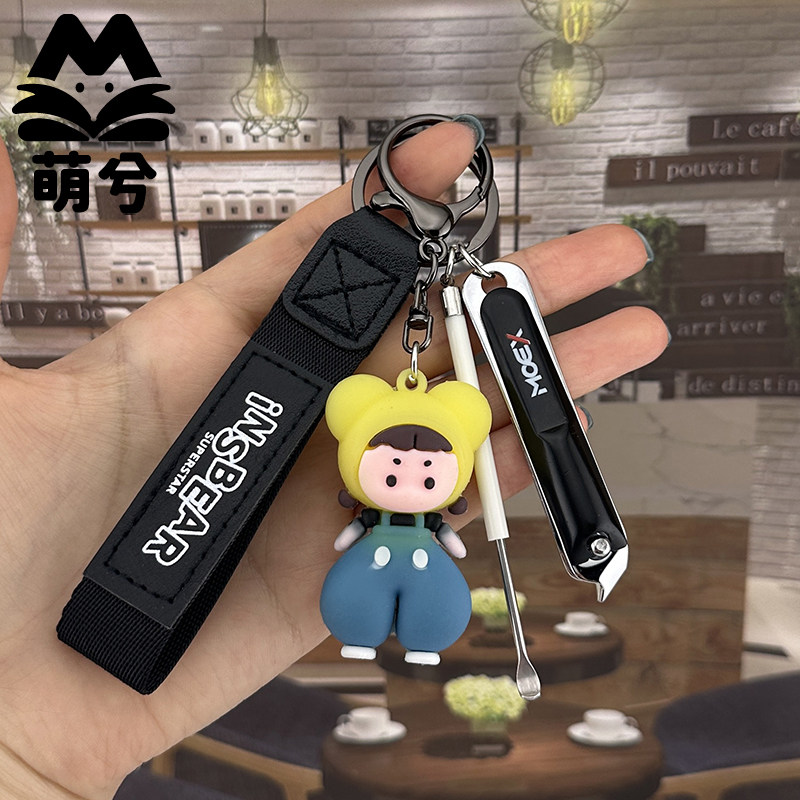 创意卡通女孩情侣挂件钥匙扣指甲刀挖耳勺套装闺蜜情侣挂件包包