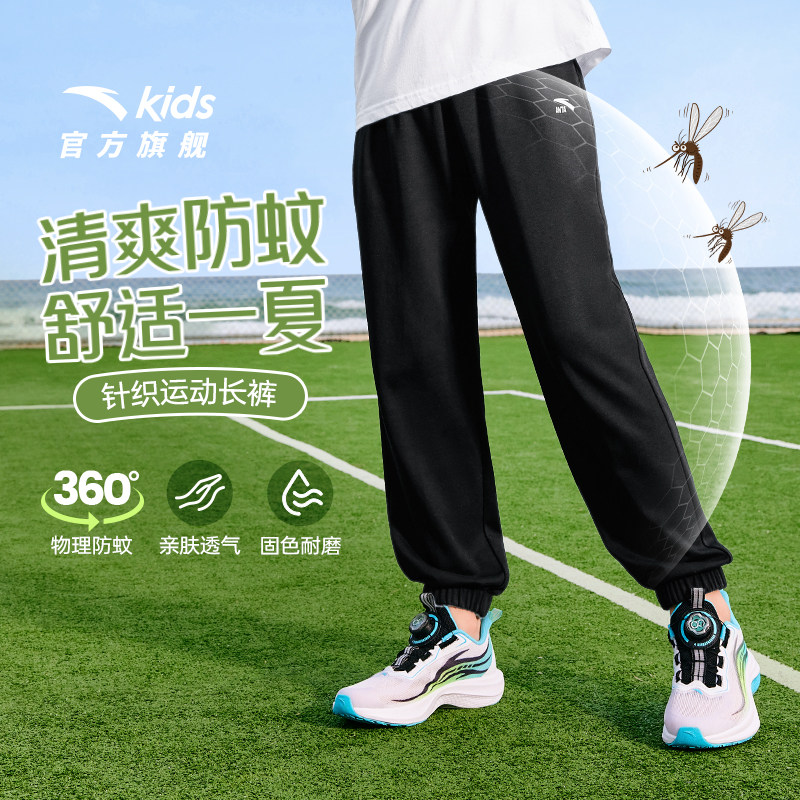 安踏儿童装男童裤子防蚊长裤夏季薄款2025新款女童卫裤夏装运动裤