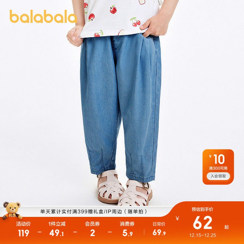 巴拉巴拉童装儿童裤子男童长裤女童夏装薄款2025新款牛仔裤防晒潮