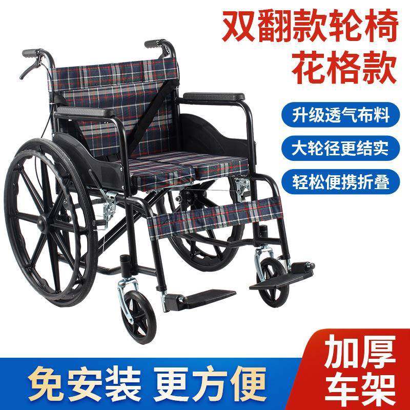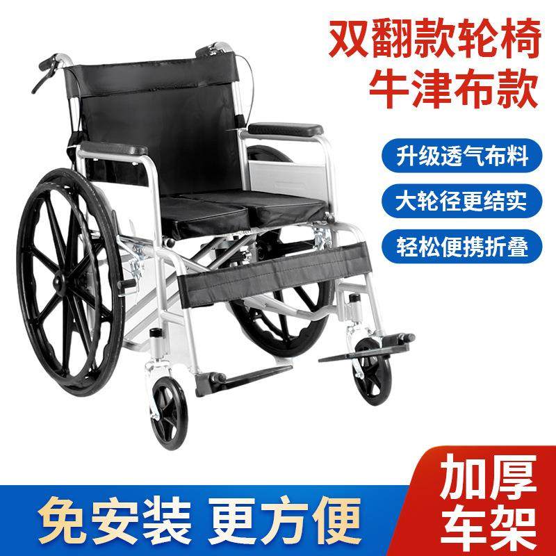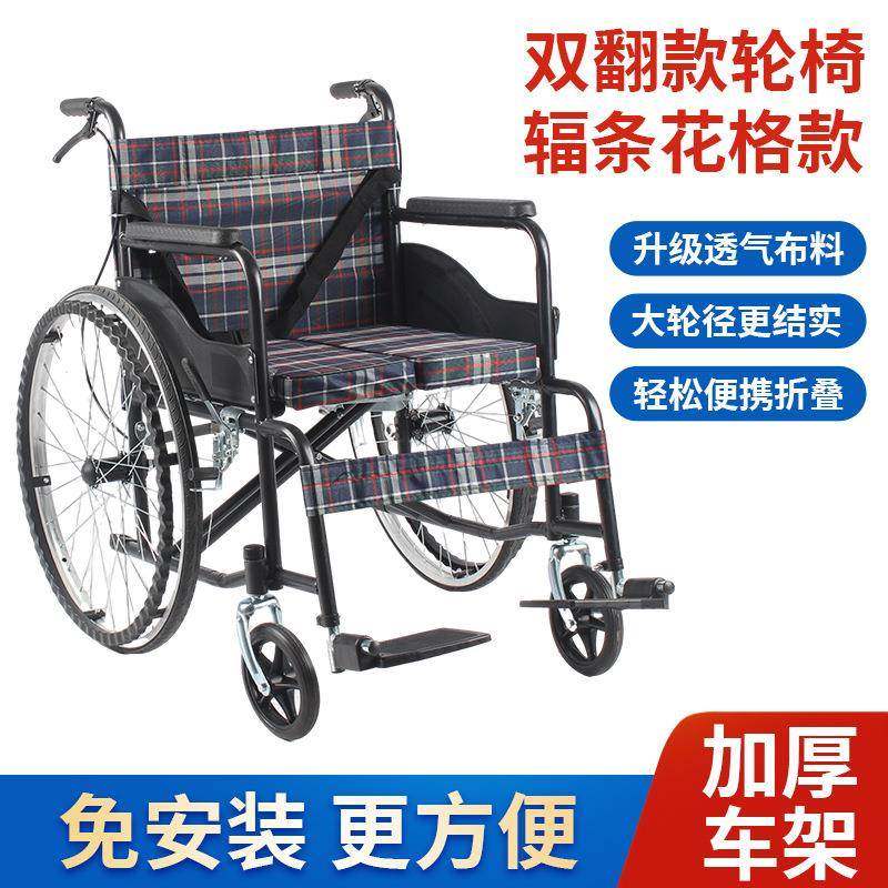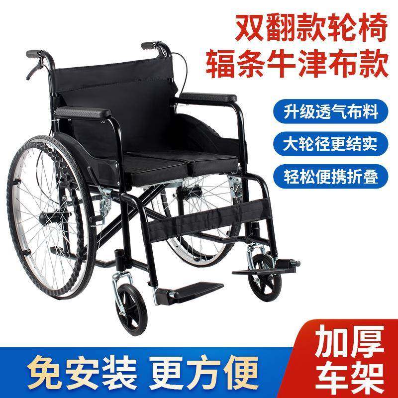 厂家老人双翻轮椅折叠轻便 超轻老年轮椅车手推代步车免充气