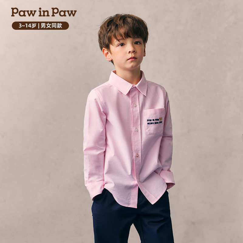 【全棉】PawinPaw卡通小熊童装26年春夏新款男女童纯色翻领衬衫