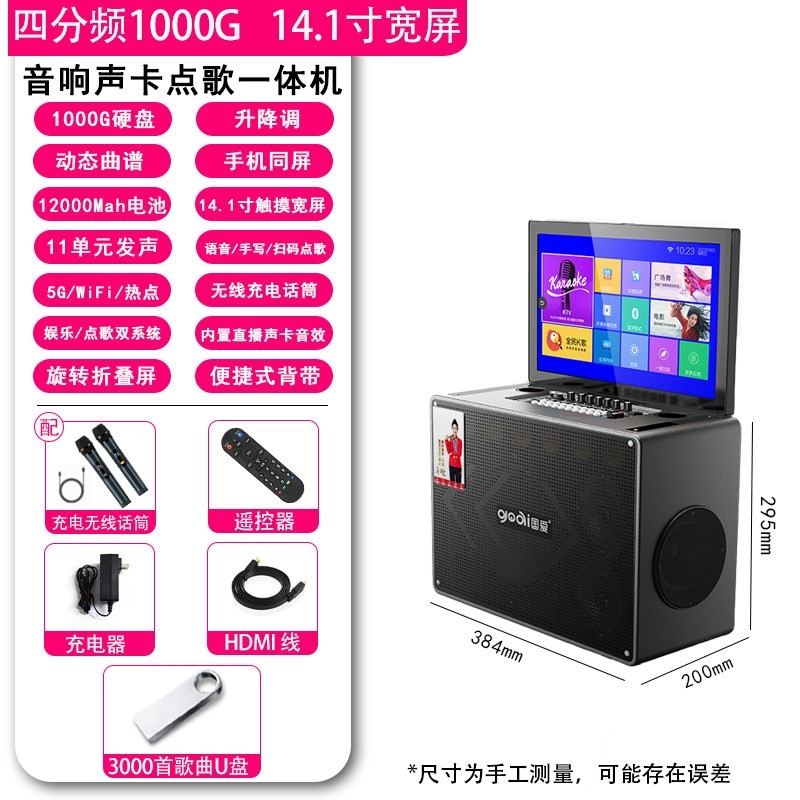 国爱户外K歌音响广场舞音箱带显OK示屏家庭KTV套装点歌一体机卡拉