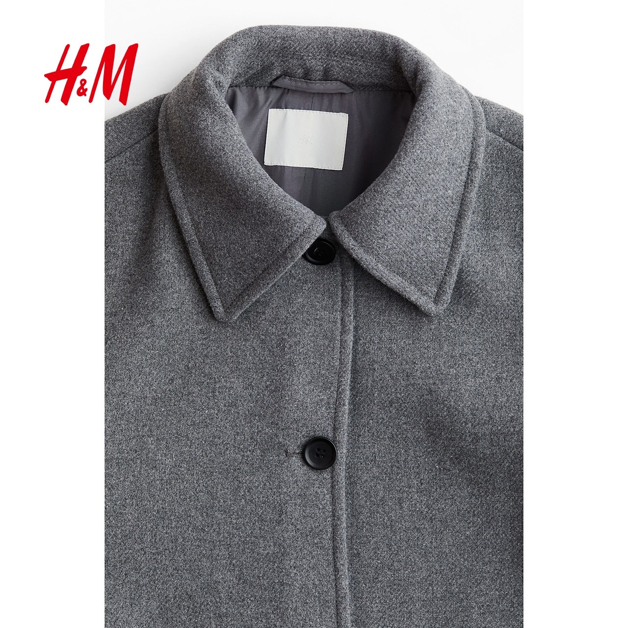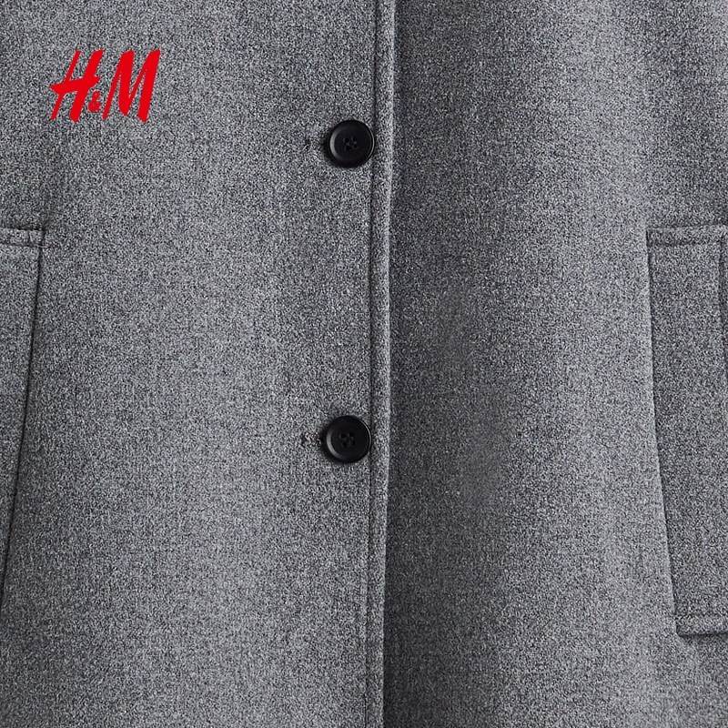 HM女装毛呢外套冬季宽松毛毡纽扣翻领及膝大衣1255546