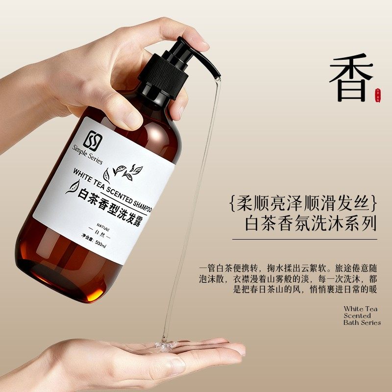 白茶洗发水沐浴露套装酒店民宿宾馆用待客洗沐护大瓶500ml整箱装