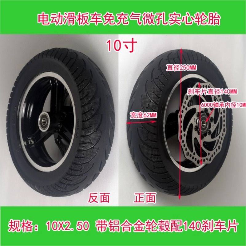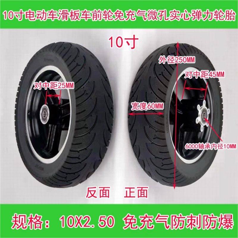 10寸电动滑板车前轮免充气微孔实心弹力轮胎10X2.50