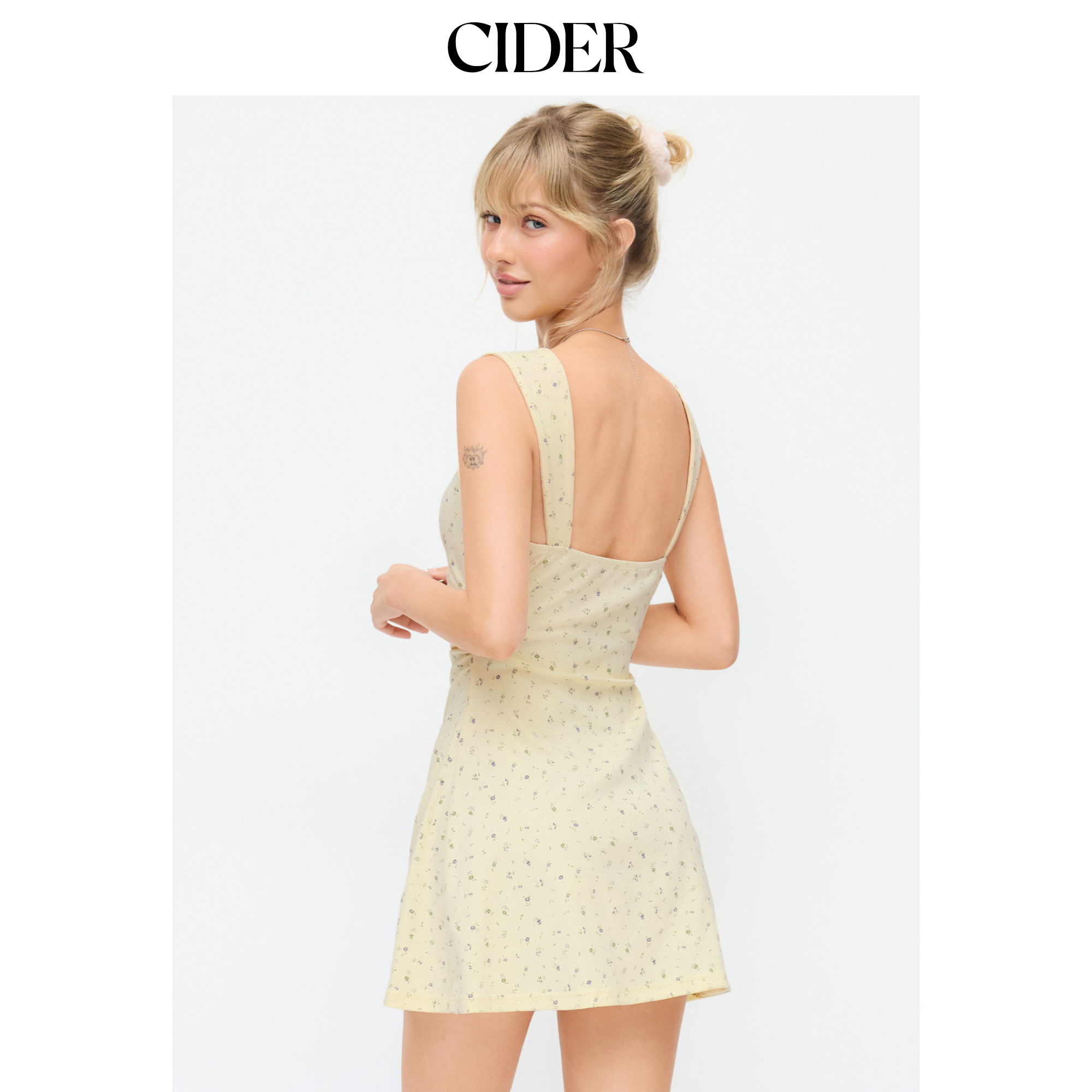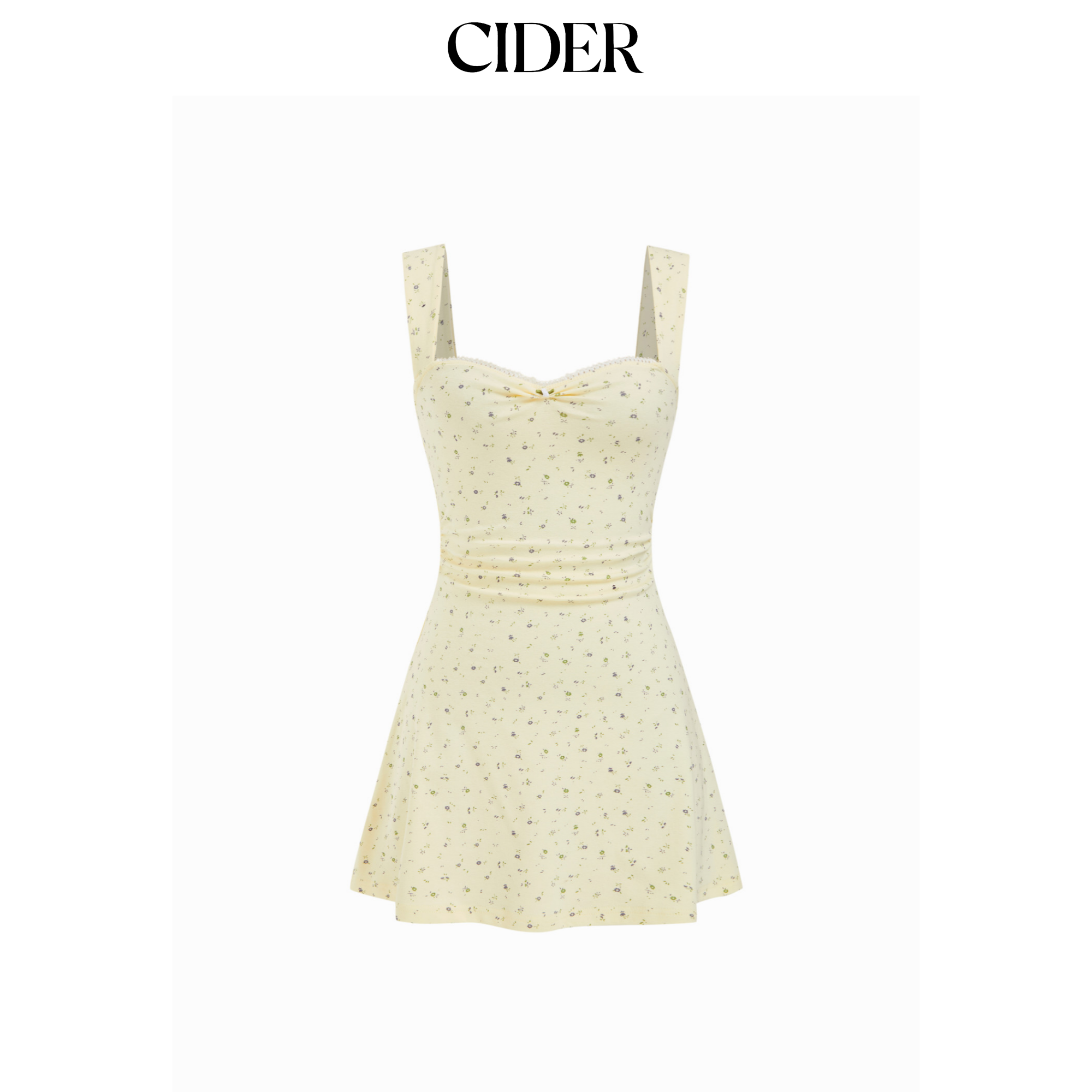 CIDER棉质混纺甜美碎花褶皱迷你连衣裙115105584