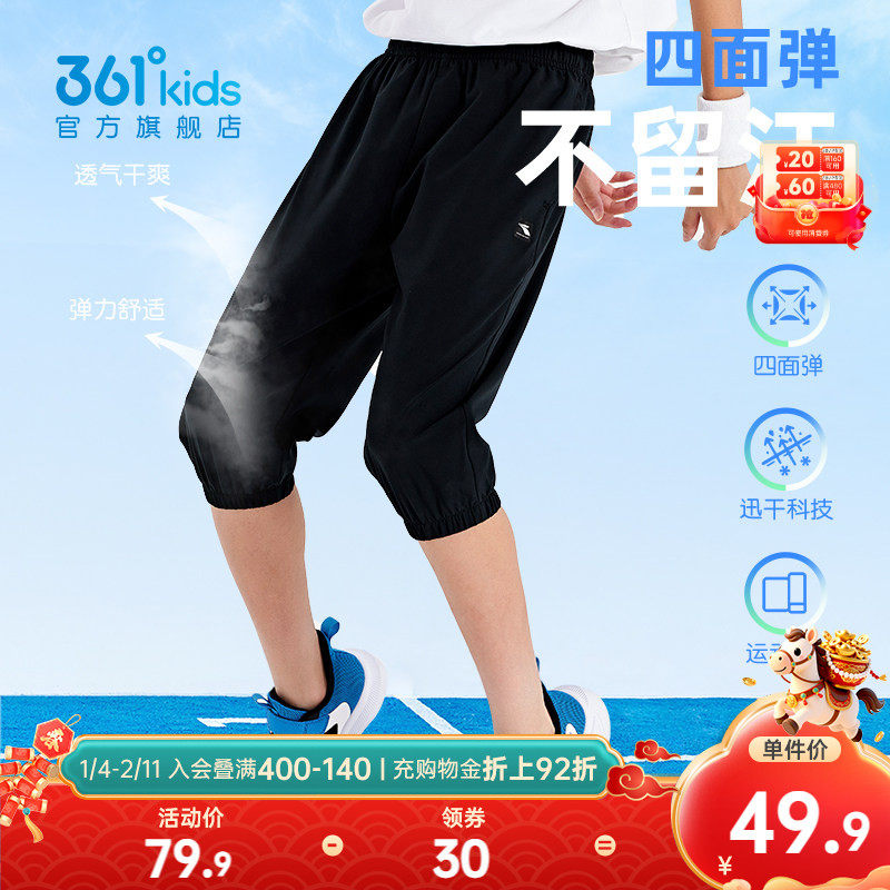 361°童装男童梭织速干七分裤2026夏季新款大童运动裤子高弹透气