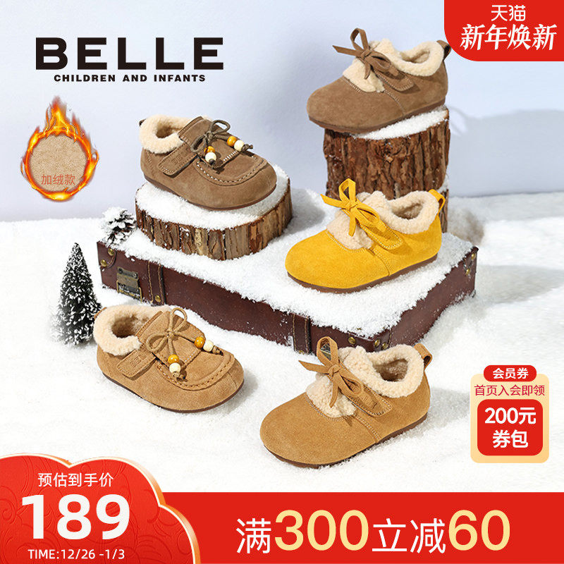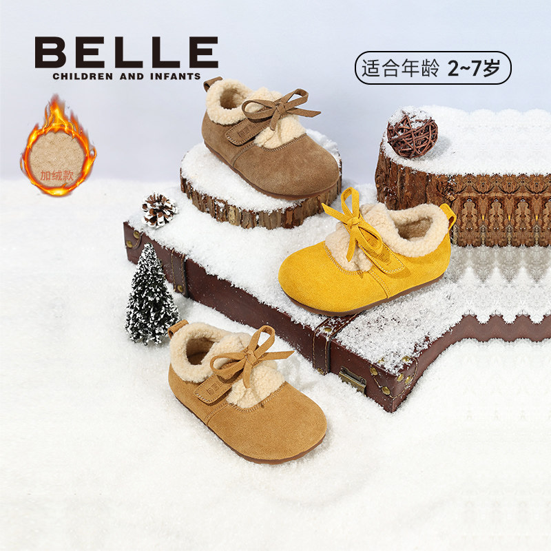 百丽童鞋25秋冬新款蝴蝶结勃肯鞋女童保暖厚底毛毛棉鞋软底休闲鞋