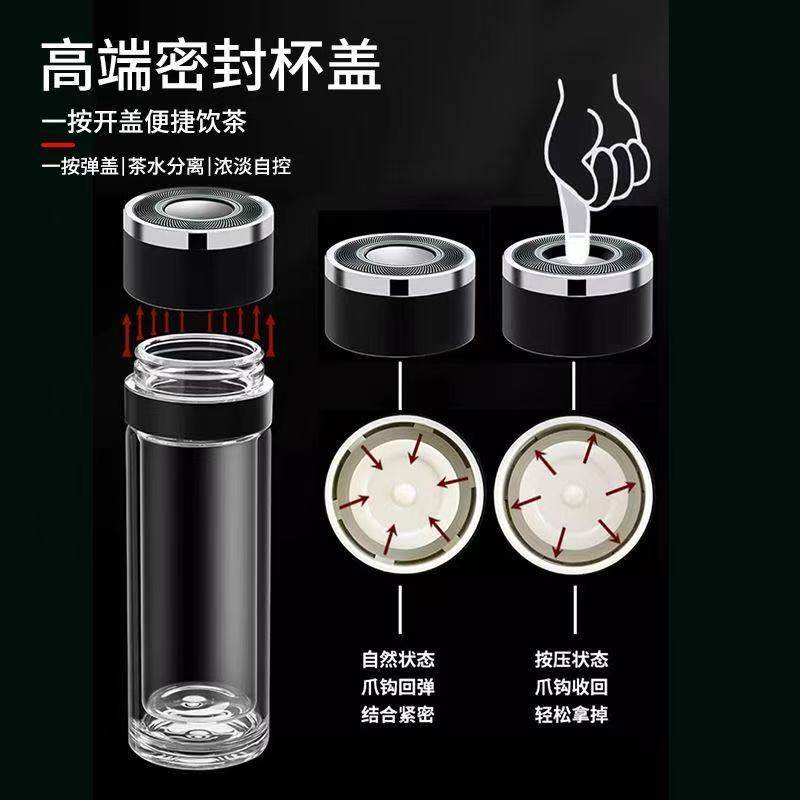 宝选一键开盖水杯车载双层玻璃杯男士泡茶保温速开茶水分离杯茶杯