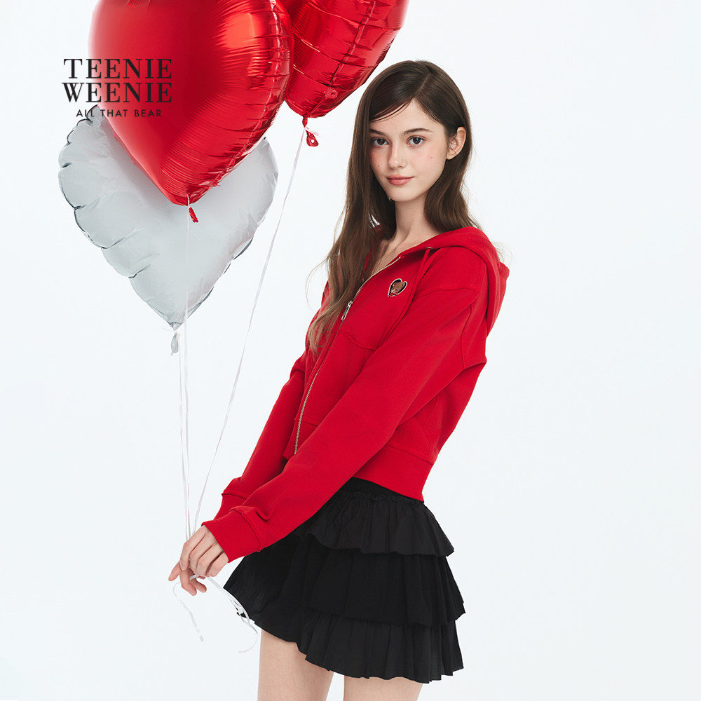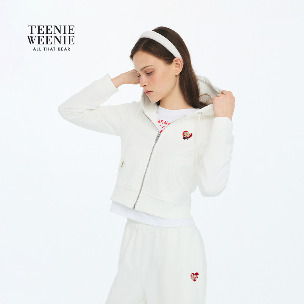 【A类】TEENIEWEENIE bearnova26春女装爱心小熊刺绣短款连帽卫衣